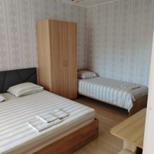 В номере находится 2-спальная кровать и 2 односпальные, душ и санузел ( горячая и холодная вода круглосуточно), телевизор, холодильник, кондиционер, wi-fi. Отдыхающим предоставляем постельное белье и полотенце