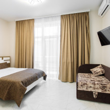 Море - 500 метров, 8 минут ходьбы, а до центрального пляжа посёлка - 800 метров, 10 минут ходьбы. Приблизительно на таком же расстоянии начинаются дикие пляжи, где можно уединиться. Пляж песчано-галечный, организован прокат зонтиков и шезлонгов, а также водных аттракционов - бананы, ватрушки, гидроциклы.