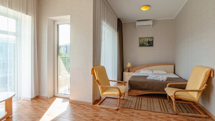 Номер рассчитан на двух отдыхающих с возможностью дополнительного размещения еще одного человека.