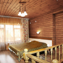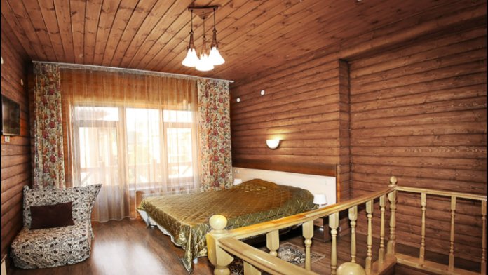 Таунхауз — комфортабельный двухэтажный номер площадью 34 кв.м. с отделкой под сруб и деревянной лестницей. Высота потолков 3 м. Отдельный вход, балкон.