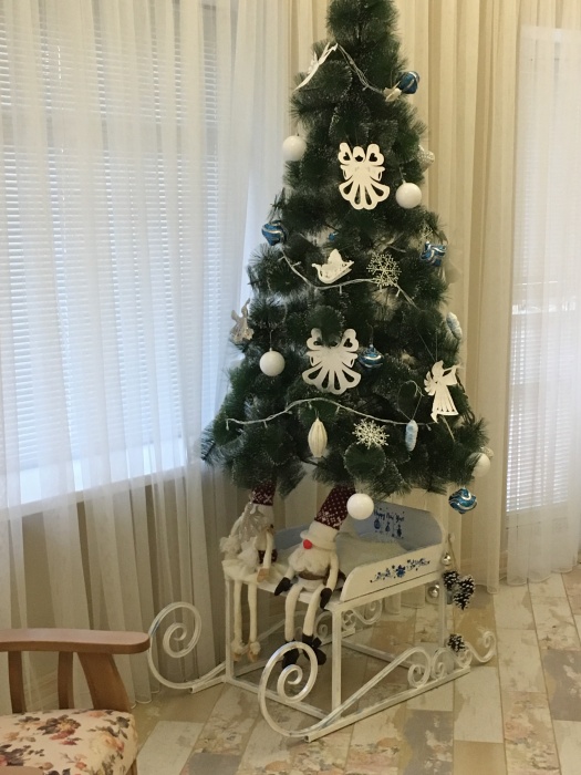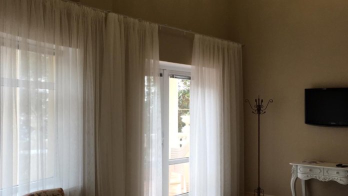 Апартаменты - 120 кв.м., с входом с террасы. На первом этаже - гостиная с потолками 5,4 м, окна с видом во двор, а также 2 раздельные спальни на втором этаже. Во всех номерах в гостиной, кухне, столовой и санузле - теплые полы. В спальнях - батареи, дом очень теплый. В парке расположена детская площадка, утопающая в вековых соснах и кедрах, с видом на море.