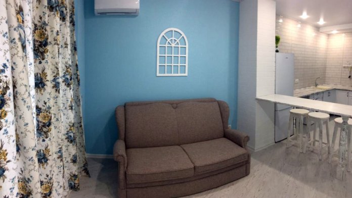 2 белые спальни с брендовым текстилем (в одной вид на море и выход на террасу, во второй спальне - 2 французских балкона с видом на парк). Огромная кухня- гостиная -столовая с ЖК-телевизором и шикарной мебелью. Есть также небольшая гардеробная.