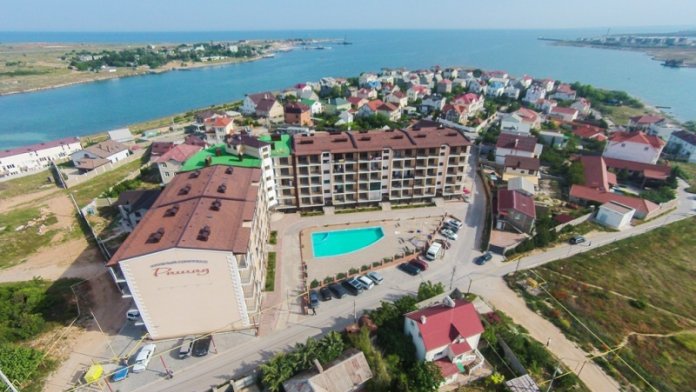 Квартира-студия в многоквартирном доме с бассейном и закрытым двором. Территория под видеонаблюдением. В торце дома находится продовольственный магазин, кулинария.