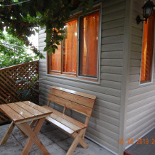 месте. Комната, кухня, туалет, душ, гор. и хол. вода постоянно, Wi-Fi, кондиционер. Диванчик заменён на евро книжку . Возле домика небольшой зеленый дворик, есть мангал и место для авто. Домик расположен в 7-10 мин. от центра города и Воронцовского парка, до моря спускаться 15 мин. Недалеко от домика находится хвойный лес и горы. Это прекрасное, тихое место с чистым горным и морским воздухом подойдет как для активного отдыха, так и для спокойных семейных прогулок. Предоставляются услуги трансфера.