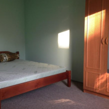 Двухкомнатный просторный номер с видом на море и озеро. Кровать king-size с ортопедическим матрацем, тумбочка, туалетный столик, шкаф для одежды, кондиционер, Wi-Fi, телевизор, журнальный столик, сушилка для белья. Из комнаты выход на террасу для отдыха, на которой столик и стулья. Небольшой коридор, в котором установлен холодильник. Санузел в номере, душ (горячая и холодная вода круглосуточно).У номера отдельный вход.