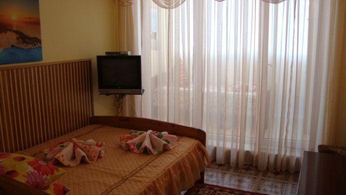 Предлагаем Вам уютный, светлый двухэтажный эллинг площадью 47 кв. м под ключ в кооперативе «Якорь» в два этажа. На первом этаже находится сан. узел, кухня- столовая со всей необходимой посудой, так же есть телевизор, диван как дополнительное место для 6 человека. На втором этаже находятся две спальни под ключ каждая и балкон с выходом в южную спальню. В северной спальне кровать 140 на 2, стол журнальный, шкаф для вещей, тумбочка, вентилятор. В южной спальне такая же кровать, журнальный столик, тумбочка, телевизор со спутниковым тв, кондиционер. На балконе кровать 80 на 2, шкаф для вещей и белья, сейф. Если Вы на своей машине, она стоит возле эллинга, территория там охраняется и въезд по пропускам на территорию. На территории имеется небольшой рыночек, где можно всегда купить свежих домашних овощей и фруктов, домашние молочные продукты, так же там есть магазин работающий до 23.00, кафе, столовая. На море есть спасатель, массажист, берег песчано-галечный, выход в открытое море на рыбалку по желанию. Для семейного отдыха, кто мечтает отдохнуть у самого моря в спокойном месте с детьми- эллинг самый оптимальный вариант. Тут нет дискотек, баров, ресторанов и т.д., все это находится в самой Николаевке в расстоянии 1 км, но зато тут всегда тихо, спокойно, уютно и Вы сами себе хозяева)) Если Вам понравилось, бронируйте раньше, т.к эллинг у нас один и он всегда пользуется большим спросом. Если нужно встретить в аэропорту либо на автовокзале, встретим в любое время суток, встреча стоит 1500 руб.