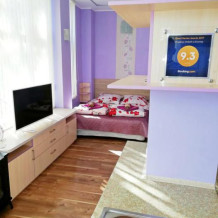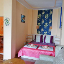 Комната-студия на 2 этаже трехэтажного дома. Для проживания есть всё необходимое: кровать двухспальная с ортопедическим матрасом, прикроватные тумбы, диван-кровать, кондиционер, холодильник, варочная поверхность электрическая на 2 конфорки, ТВ, WI-FI, бойлер 80 л (вода без перебоев), фен, утюг, посуда, бельё, полотенца, балкон/лоджия, парковочное место.