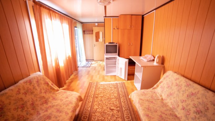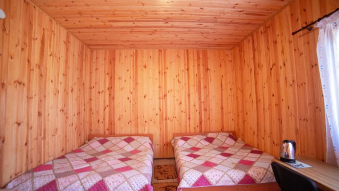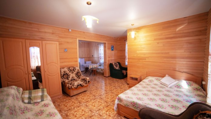 Комната с четырьмя односпальными кроватями, которые при желании можно расположить по собственному желанию. Также в номере шкаф, зеркало, два стола, стулья. Возле комнаты терраса со столом и стульями для отдыха. Интернет, холодная и горячая вода - круглосуточно.