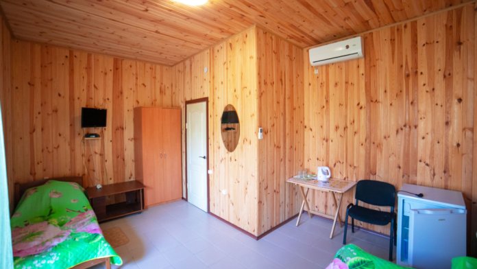 Номер расположен на отельной территории площадью 400 кв.м. Имеет террасу со столиком и стульями для отдыха на воздухе. Вода холодная и горячая круглосуточно, беспроводной интернет, все удобства.