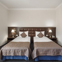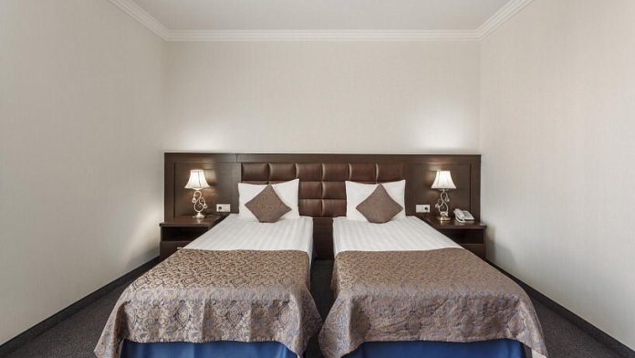 Комфортный однокомнатный номер с одной двуспальной или двумя односпальными кроватями. Возможна установка дополнительного спального места.