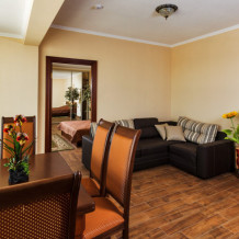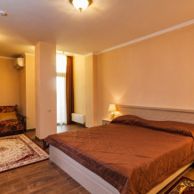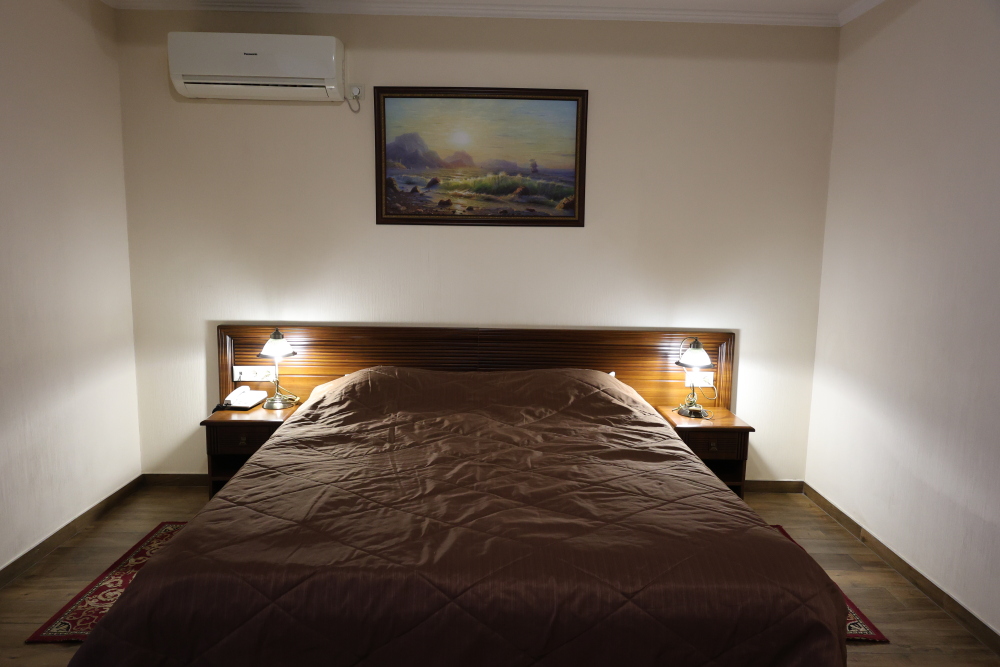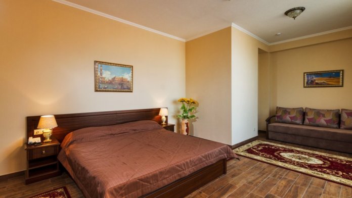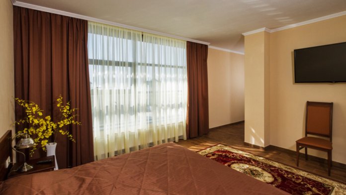 Отель включает в себя три основных комплекса: Центральный, Пляжный и Банный. В каждом из этих комплексов предусмотрен разноплановый номерной фонд — уютные одно-, двух- и трехкомнатные гостиничные номера, интерьерный дизайн которых разработан с учетом расположения и предназначения каждого комплекса. Номера оборудованы современной добротной мебелью, бытовой техникой, сейфами, санузлами с биде, предусмотрено бесплатное пользование Wi-Fi.