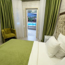 Для гостей доступны услуги: восхитительные блюда от шефа ресторана с обслуживанием A la Carte и заказ блюд в номер, парковка, детская площадка, круглосуточная стойка регистрации, великолепные номера отеля с выходом к бассейну из номеров, а так же скоростной интернет Wi-Fi и услуги для бизнеса.