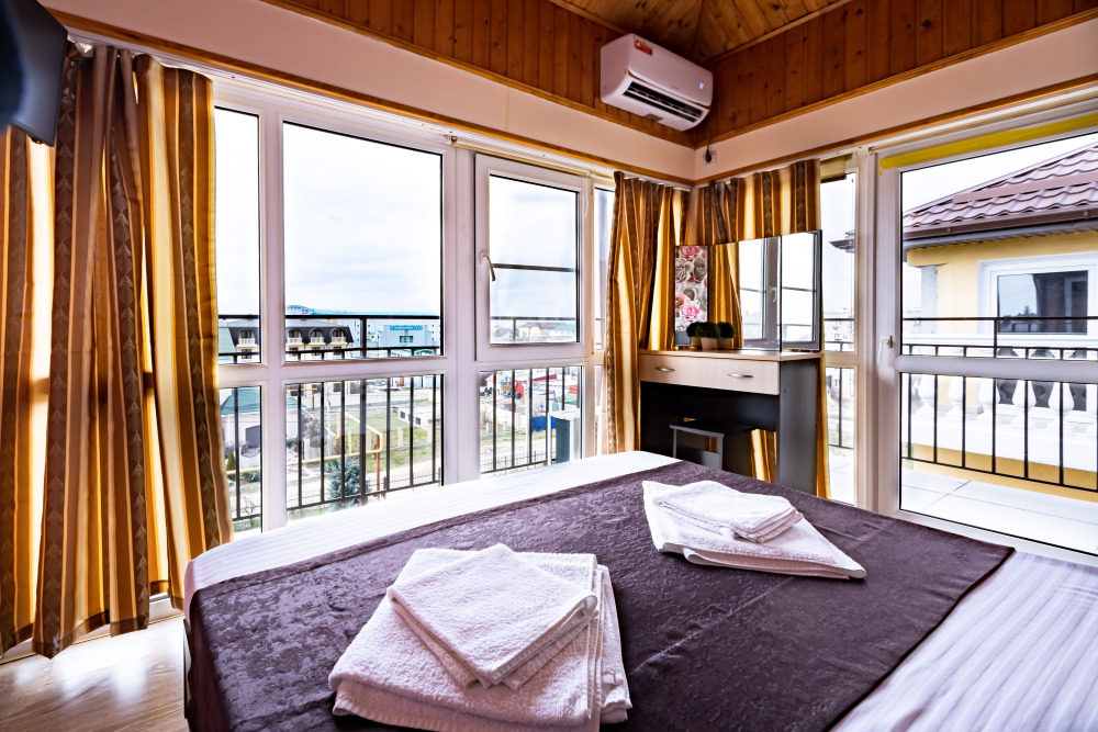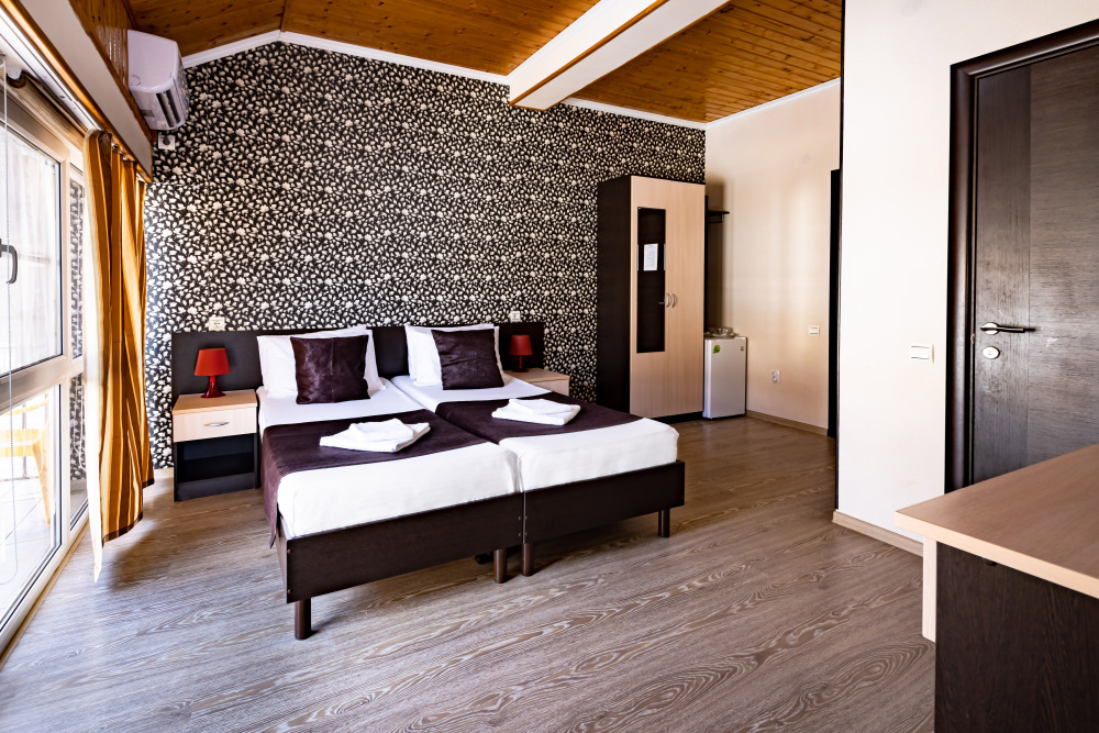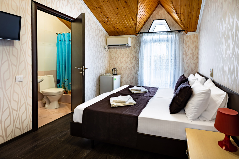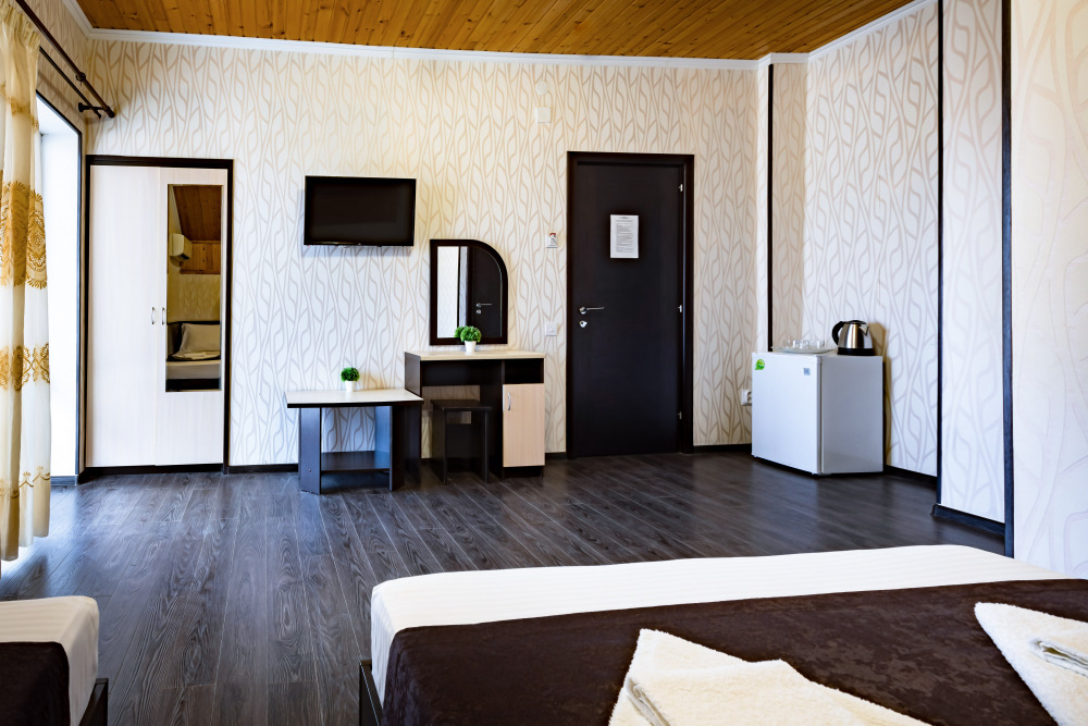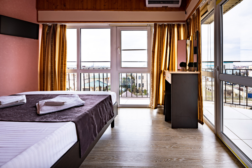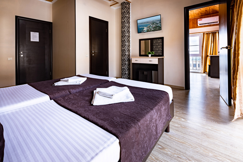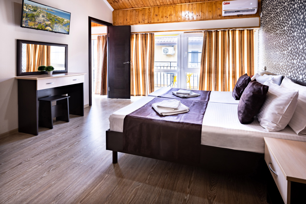 В номерах телевизоры с плоским экраном (спутниковое ТВ), собственная ванная комната, гигиенические принадлежности и все для комфортного отдыха на море.