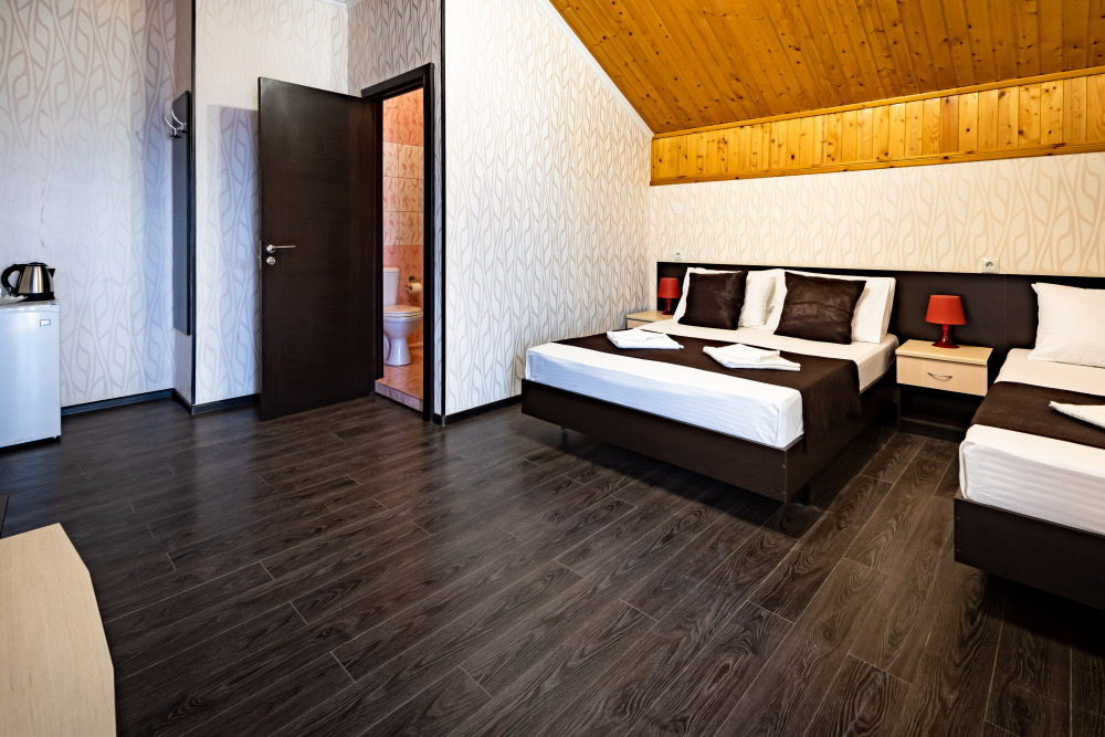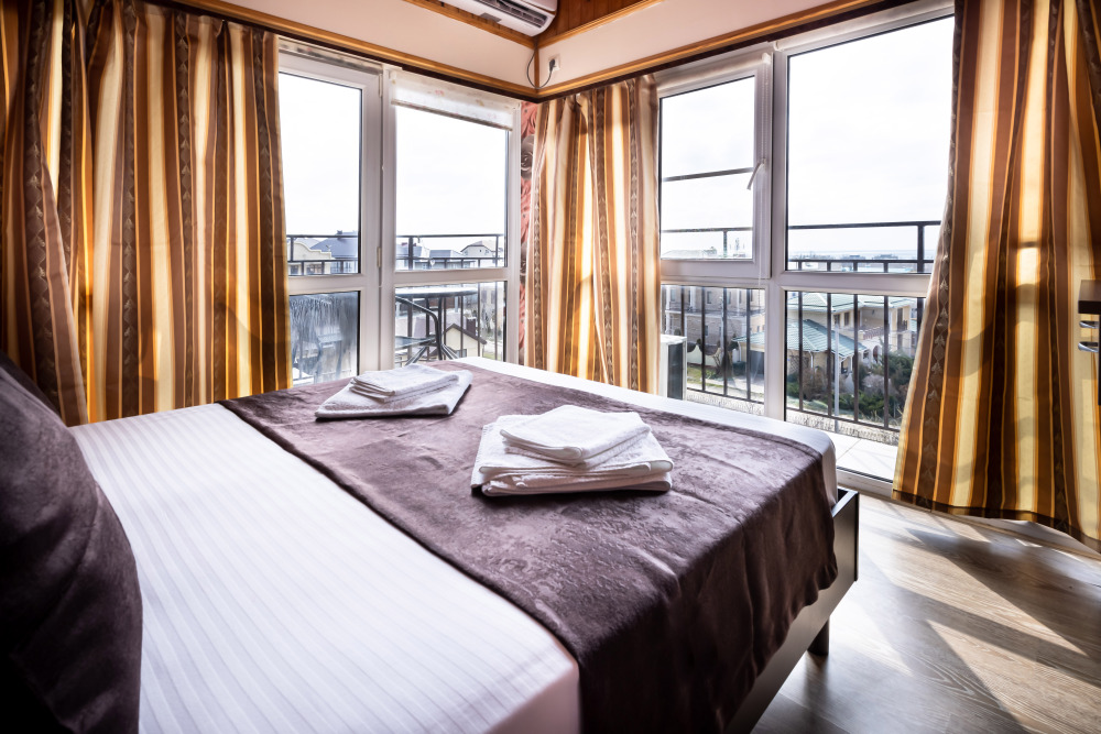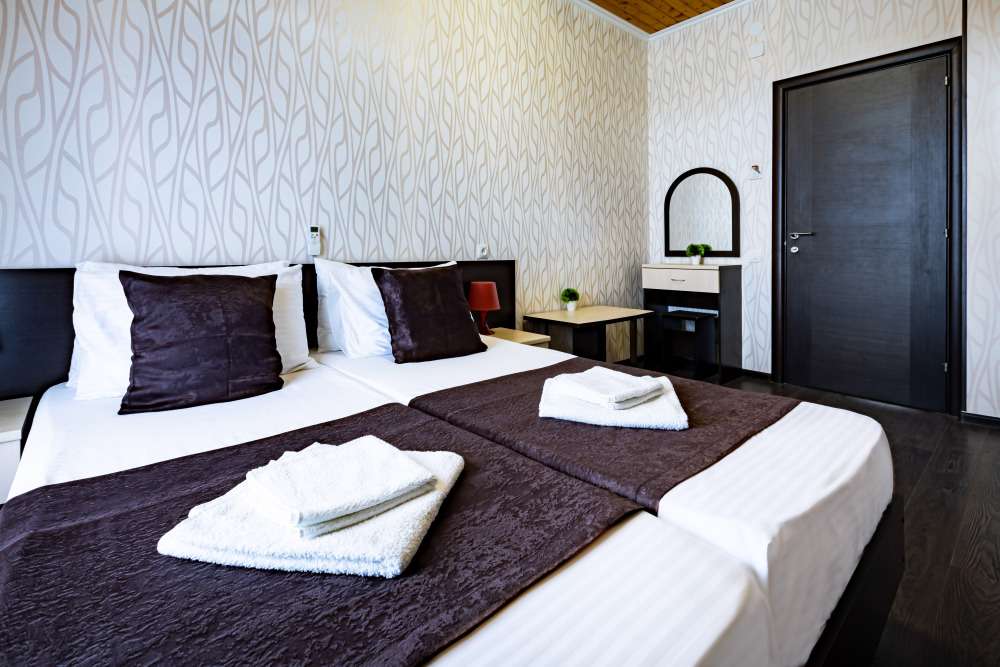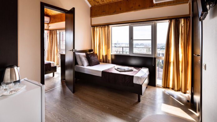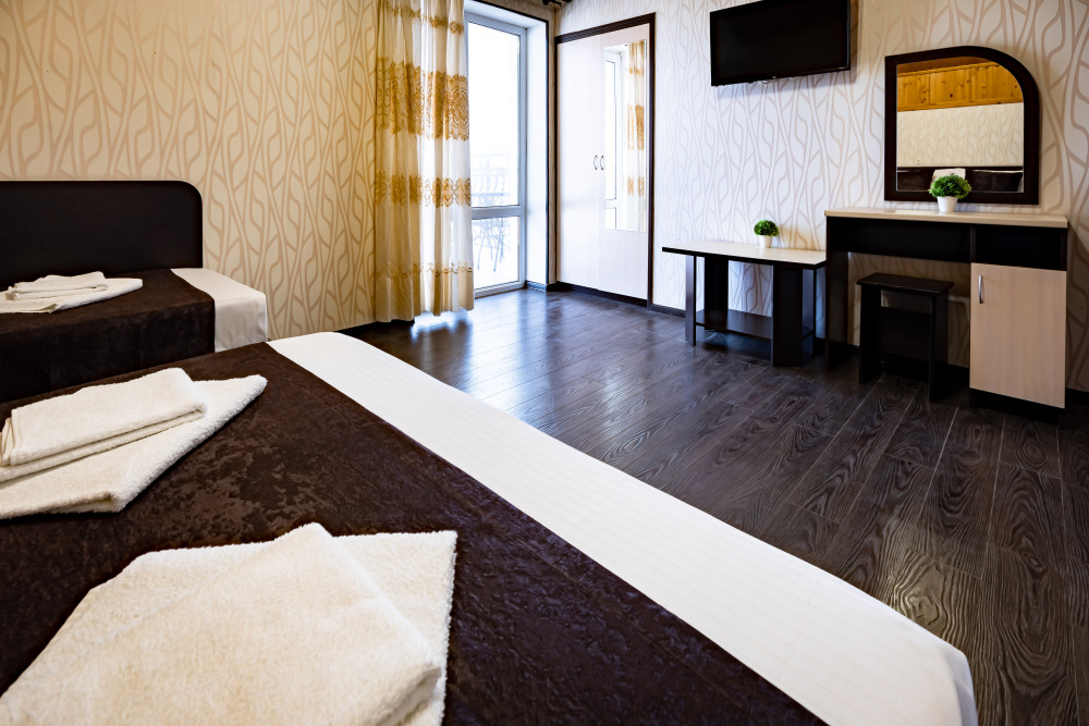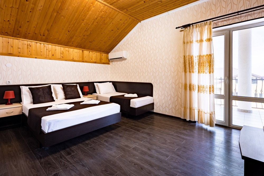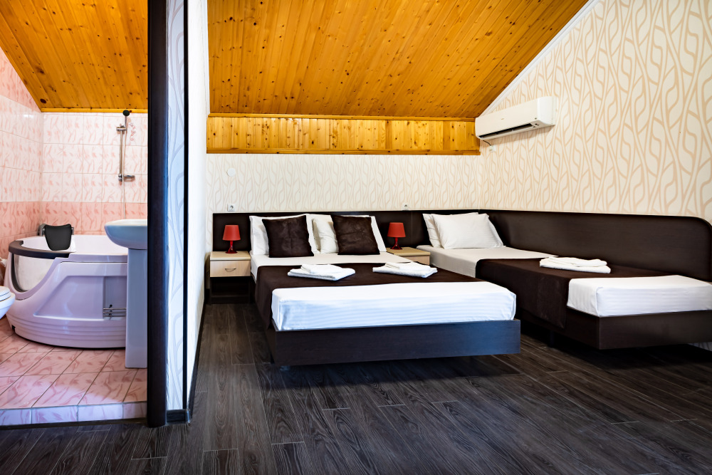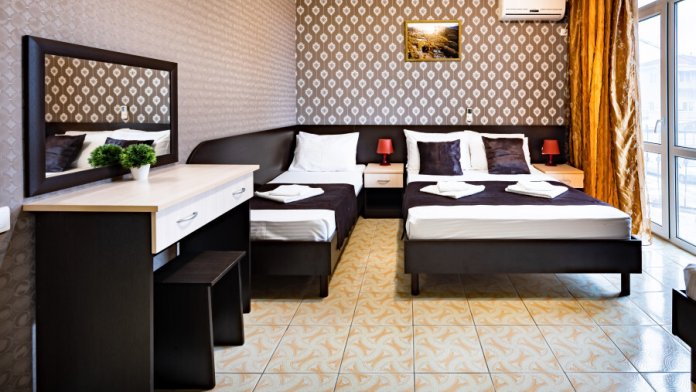 В номерах телевизоры с плоским экраном (спутниковое ТВ), собственная ванная комната, гигиенические принадлежности и все для комфортного отдыха на море.