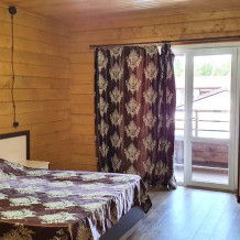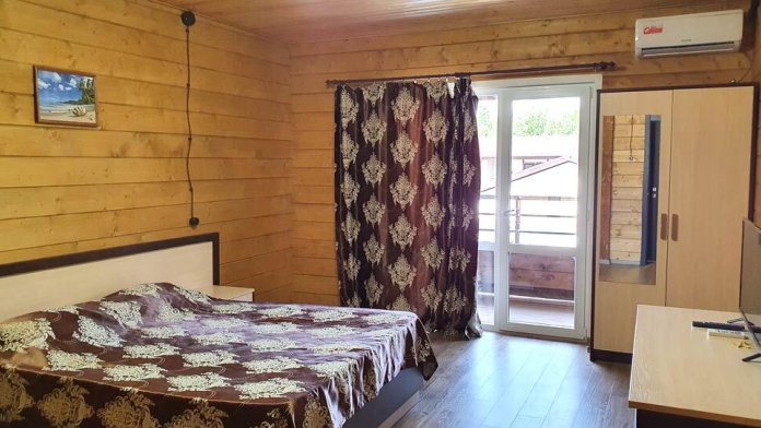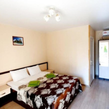 Автономный вход в номер с веранды (на 1 этаже); с террасы (на 2 этаже). Комфортабельный номер с большой двуспальной кроватью, общей площадью 21 кв.м. В номере имеется мягкое раскладное кресло, которое можно использовать для размещения третьего гостя.