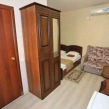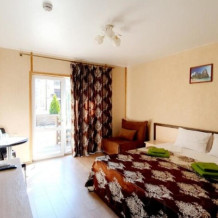 Комфортабельный номер, рассчитанный на проживание до четырех гостей. В номере большая двуспальная и односпальная кровати, а также раскладное мягкое кресло-кровать. общая площадь - 23 кв.м.