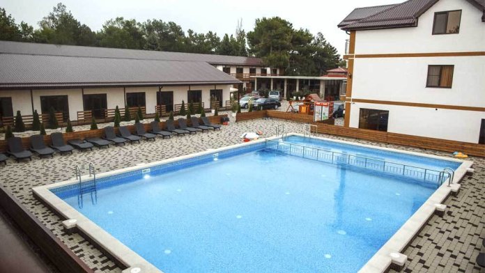 На благоустроенной огороженной территории отеля есть все необходимое для комфортного проживания: большой бассейн, окружённый удобными шезлонгами, зоны отдыха, беседки, барбекюшницы, горка для детей, кафе-столовая. Wi-Fi доступ в интернет на всей территории. Имеется бесплатная парковка для автотранспорта.