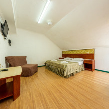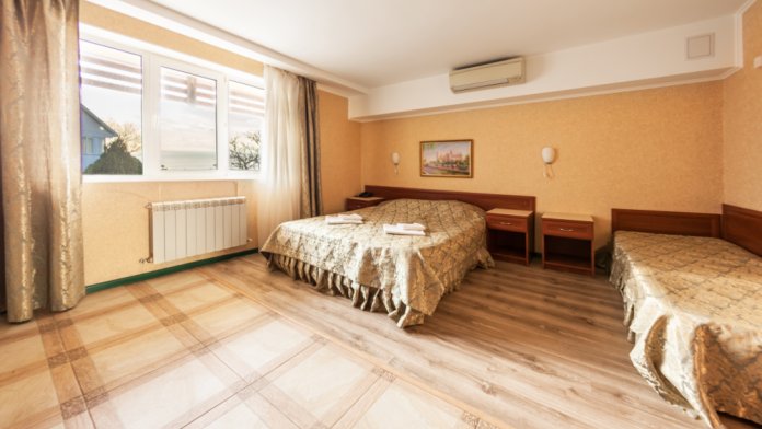 Номера располагаются на 2-4 этаже. Уютные однокомнатные номера с 3 односпальными кроватями или 2 односпальными и 1 двуспальной кроватью. Просторные номера оборудованы всем необходимым для комфортного отдыха гостей.