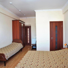 Для Вашего отдыха предлагаются комнаты в жилом доме со всеми удобствами. Все они оборудованы сплит системами, новой мебелью, телевизорами, холодильниками. На территории располагается детский и взрослый бассейны, детская игровая площадка, качели, летний навес от солнца, площадка для отдыха, оборудованная шезлонгами и летними столиками, теннисный стол. До моря 10-12 минут, в шаговой доступности Магнит, Пятёрочка, аптека, по пути к морю все столовые, кафе, сувенирные лавки, парк аттракционов. Это лучшее место для семейного отдыха!