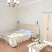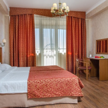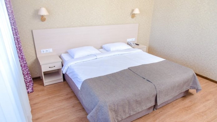 В номере двуспальная кровать или 2 односпальные. Вместимость до 4 взрослых + 1 ребенок до 4-х лет.