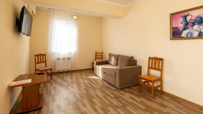 Комплектация номеров соответствует евростандарту уровня три звезды. При желании клиента в номере может быть установлена дополнительная мебель.