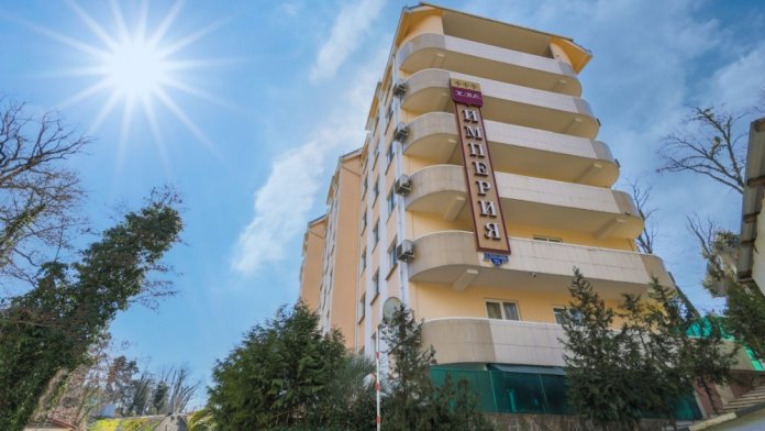 Отель «Империя» рада предложить Вам первоклассный отдых в уютных номерах. Расположена она всего в 20 метрах от просторного пляжа «Салют». Восьмиэтажное здание отеля своей белизной напоминает морской парус. Великолепная уличная иллюминация, зелень цветов и свежий воздух создают особое настроение.