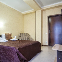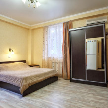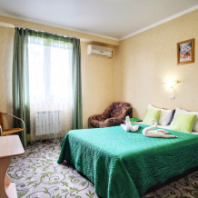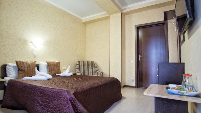 В каждом номере - телевидение (цифровое общественное вещание), холодильник, индивидуальный кондиционер, санузел с душем. Покрытие пола – ламинат. Общее количество номеров: 20. Уборка номеров и смена полотенец - раз в три дня, смена постельного белья - раз в 6 дней.