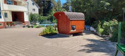 На территории отеля — открытый бассейн и на 1 этаже отеля — закрытый бассейн. Оба бассейны с подогревом. Так же в распоряжении гостей сауна с кедровой бочкой.
