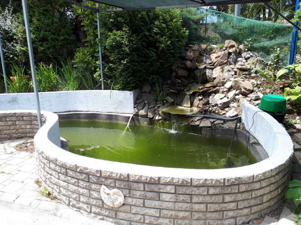 Благоустроенная территория с цветниками, прудом, беседкой.