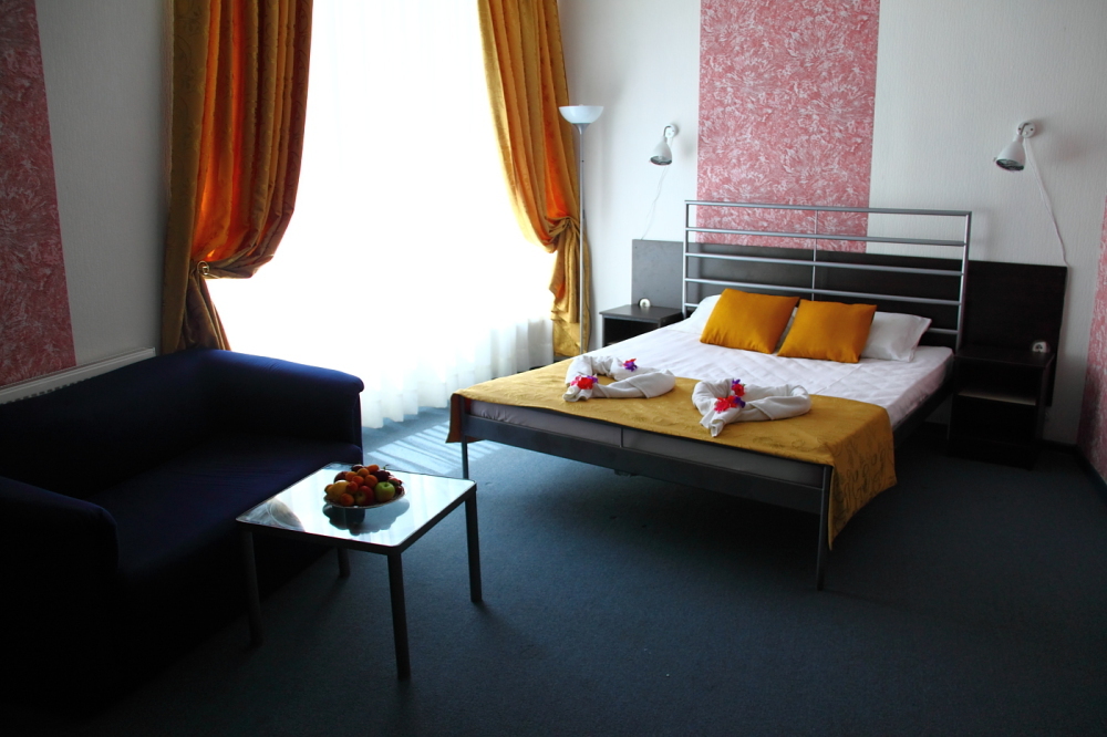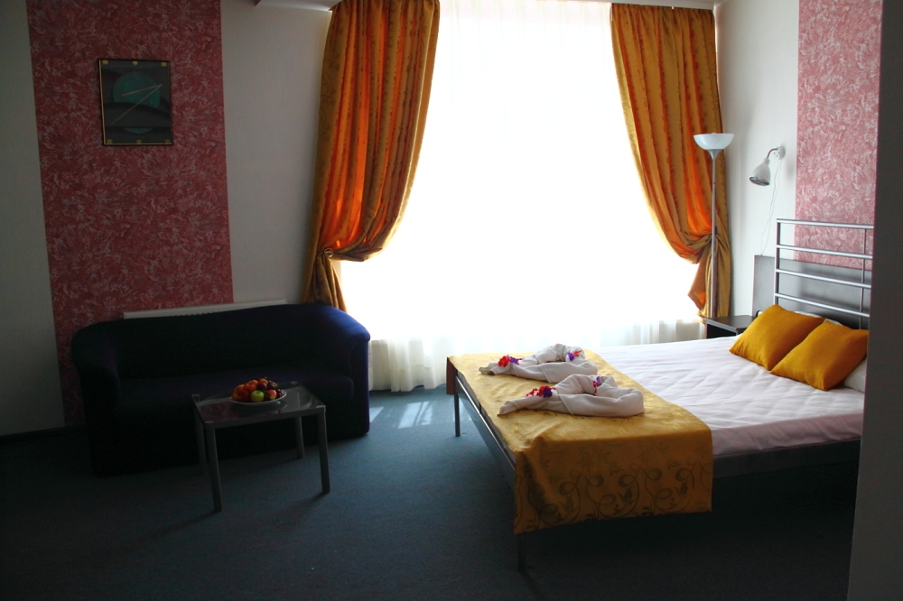 Одна комната. Одна двуспальная (или две односпальные кровати) с прикроватными тумбочками, шкаф, журнальный столик, телевизор с плоским экраном (спутниковое ТВ – 20 программ), мини-бар, торшер, кондиционер, чайный столик (эл. чайник, чай, сахар). С/у с душевой кабиной, фен. Балкон с пластиковой мебелью.