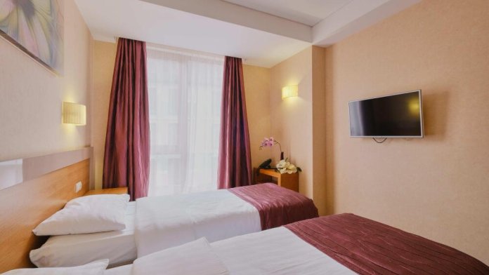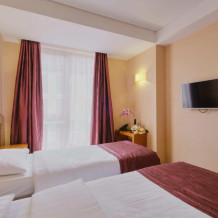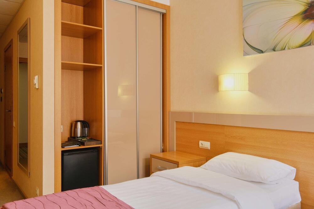 Уютный однокомнатный номер с двуспальной или двумя односпальными кроватями. Один ребёнок до 6 лет — можно без отдельного спального места.