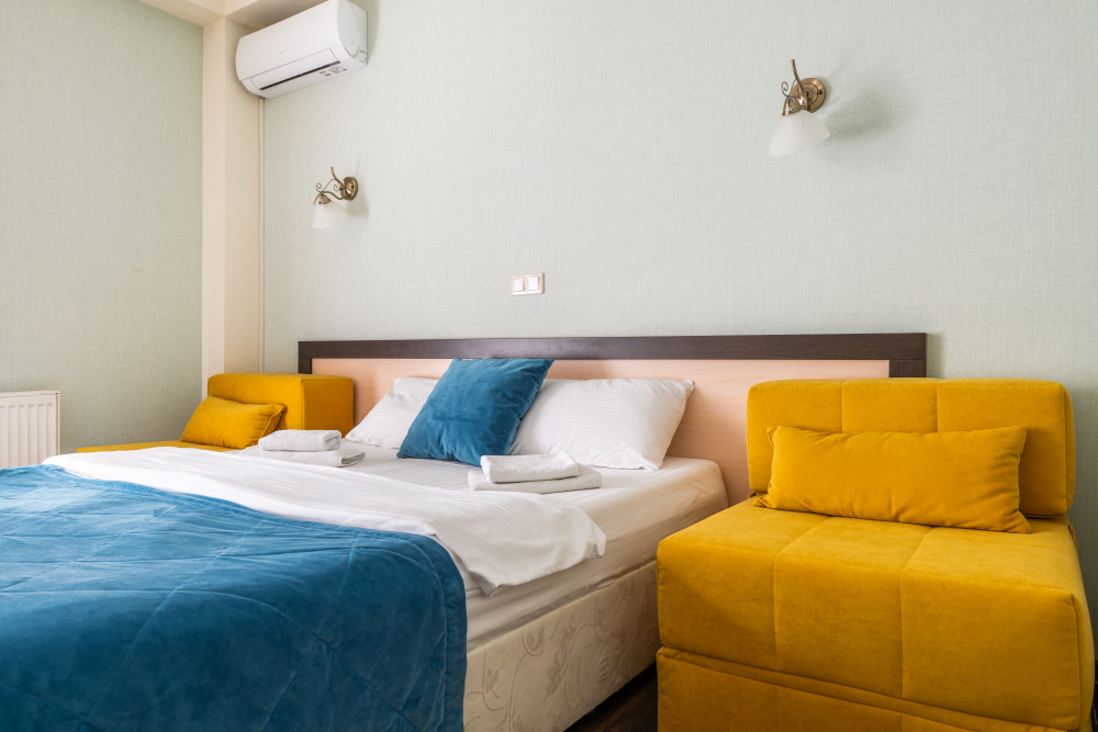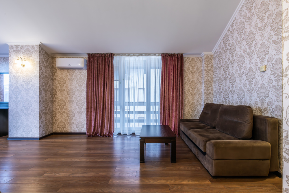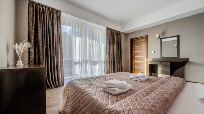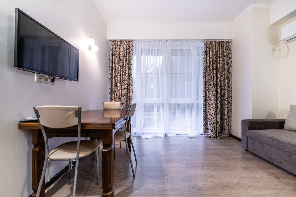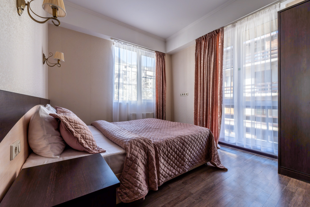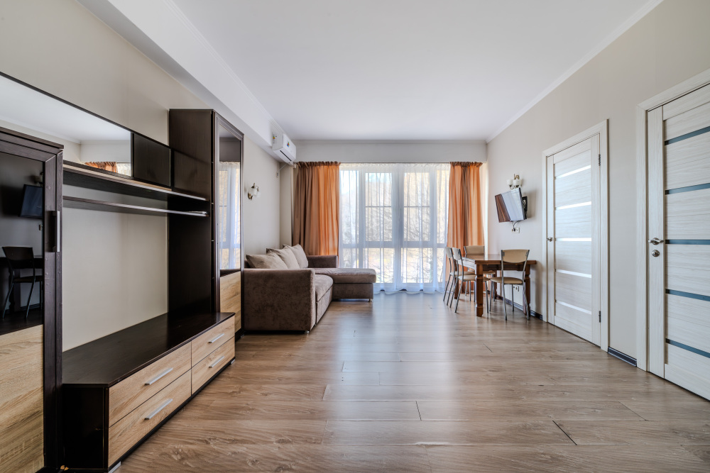 В апартаментах отдельная спальня, детская и просторная гостиная – самая удобная планировка для комфортного отдыха.