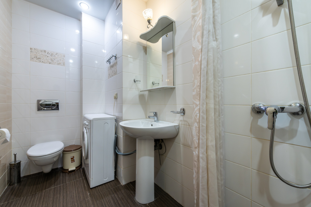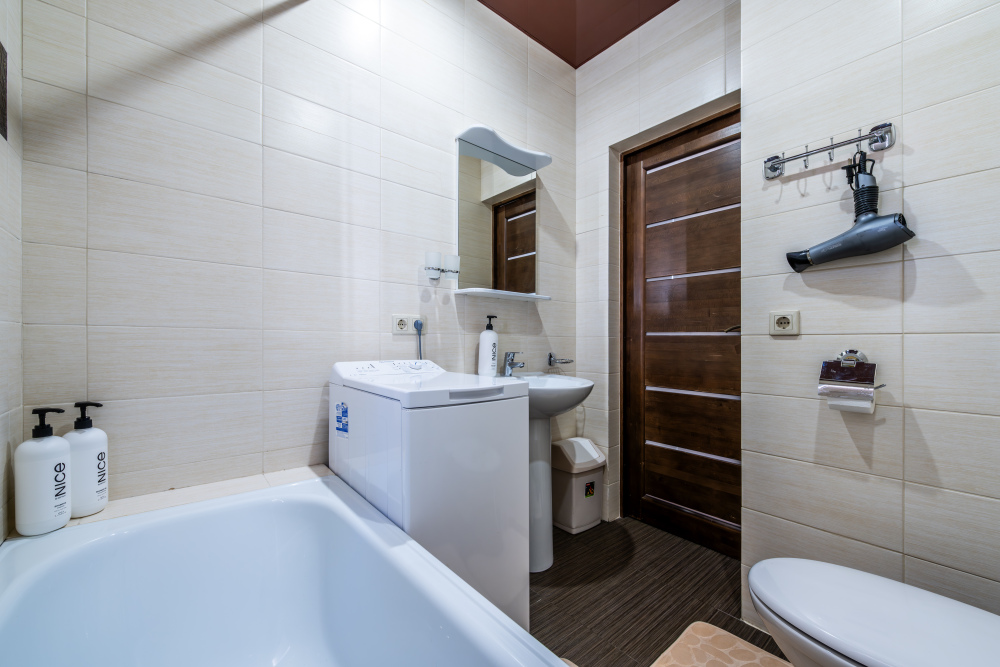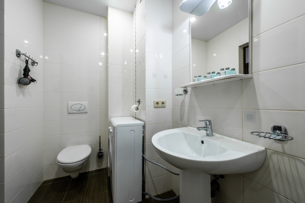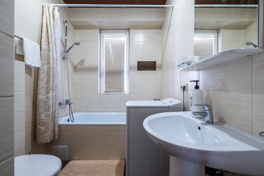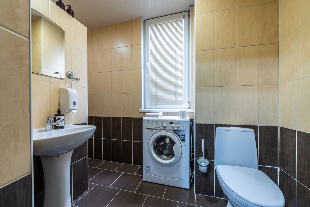 В собственной ванной комнате можно пользоваться стиральной машинкой, феном, тапочками и бесплатными туалетно-косметическими принадлежностями.
