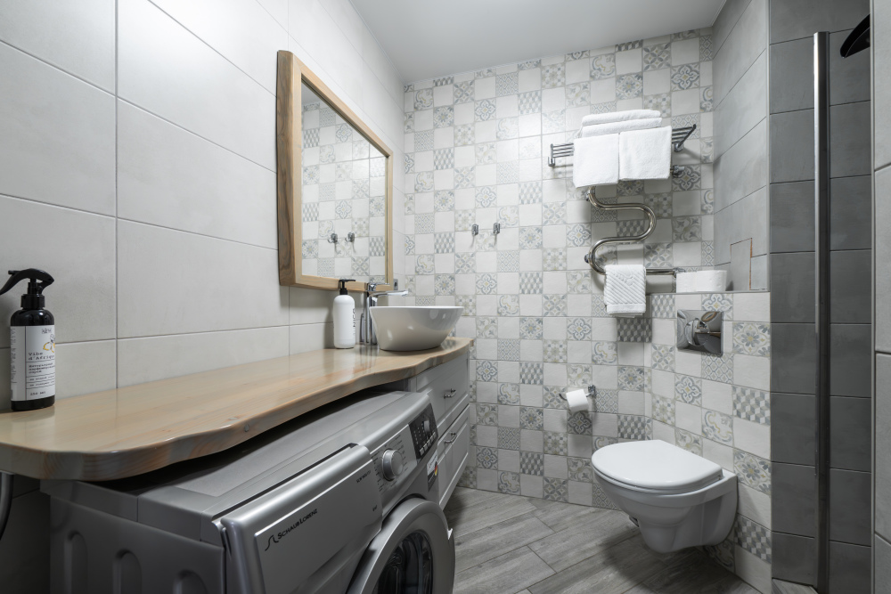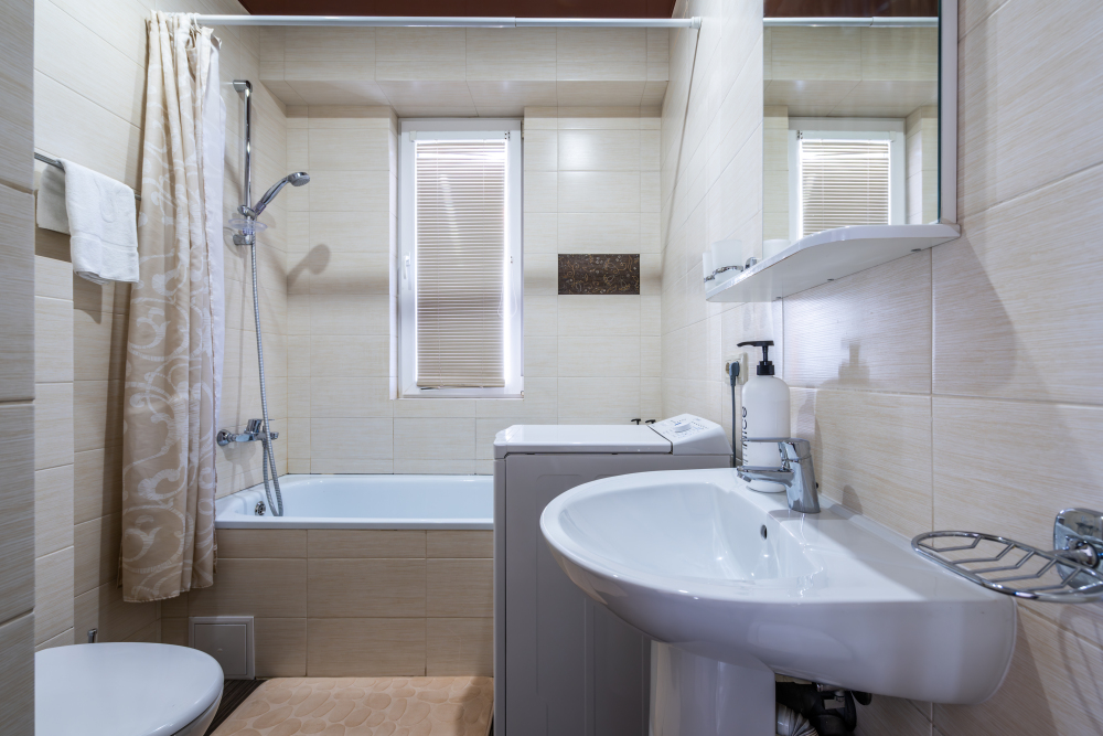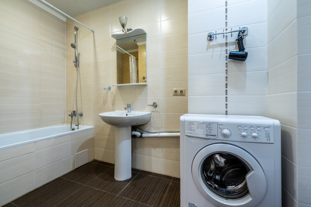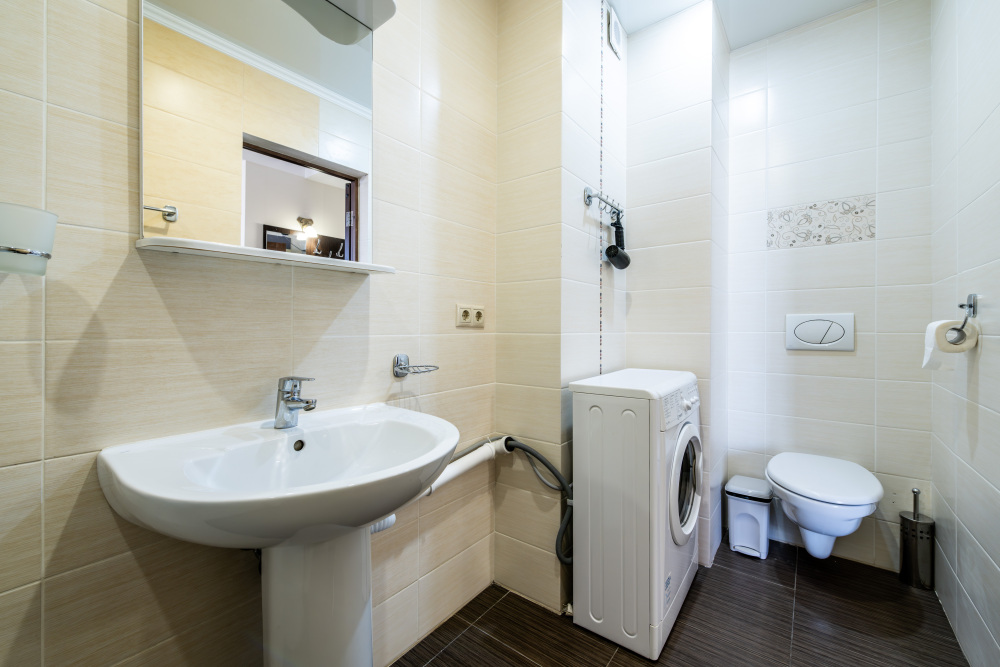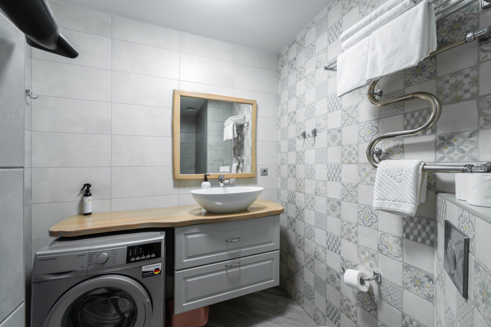 В собственной ванной комнате можно пользоваться стиральной машинкой, феном, тапочками и бесплатными туалетно-косметическими принадлежностями.