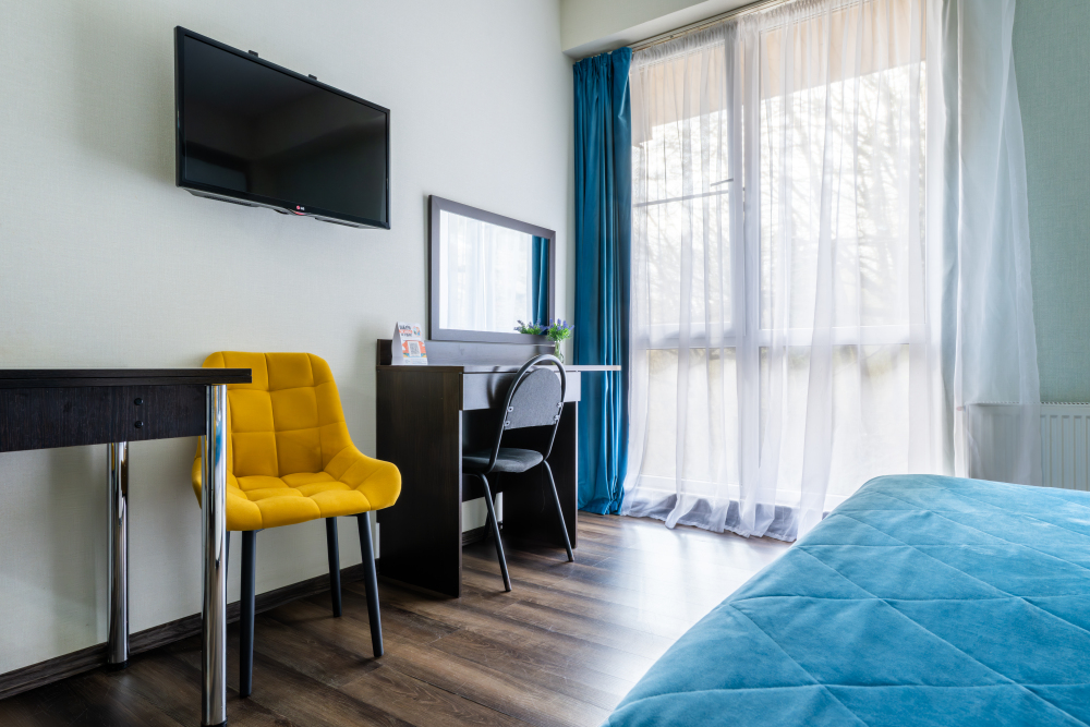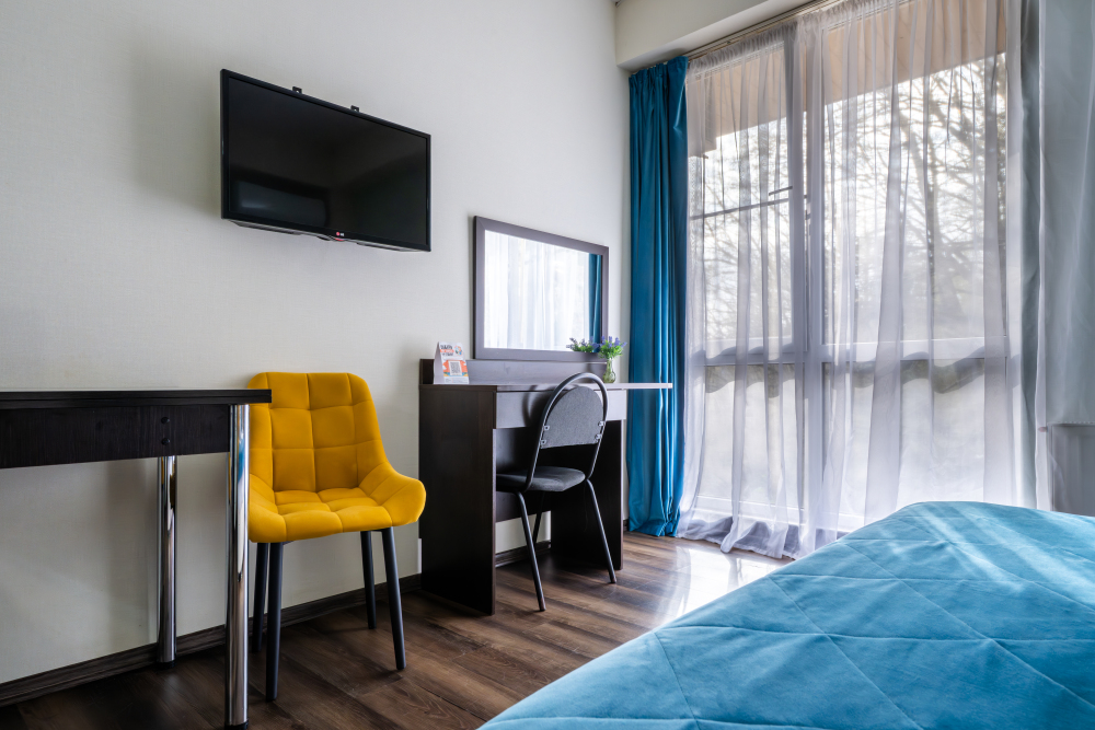 Студия с балконом 19м2, Такую комнату можно забронировать с двумя раздельными, односпальными кроватями. Номера оборудованы всеми удобствами. Есть холодильник, микроволновка, электрический чайник, обеденная группа. Предусмотрена мини кухня с необходимым инвентарем и оборудованием для приготовления блюд. В Студии установлена большая кровать, доп место футон, телевизор, письменный стол. Санузел с душем или ванной. Приятно выйти утром на балкон, залитый солнцем, и насладиться поистине впечатляющими природными пейзажами.