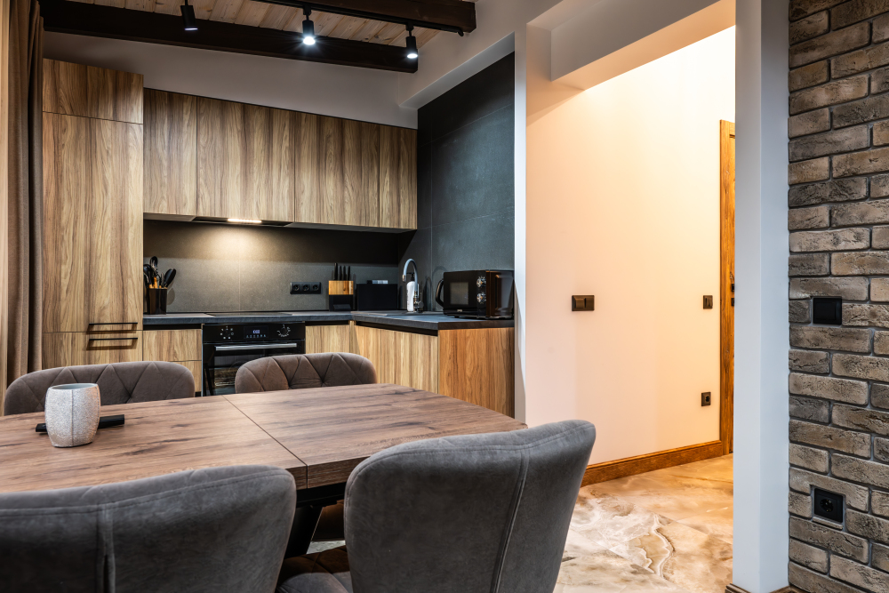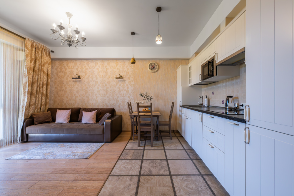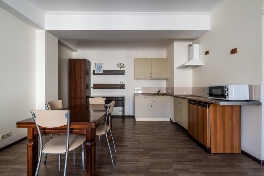 • Полноценная кухня (духовка/варочная/посудомойка)