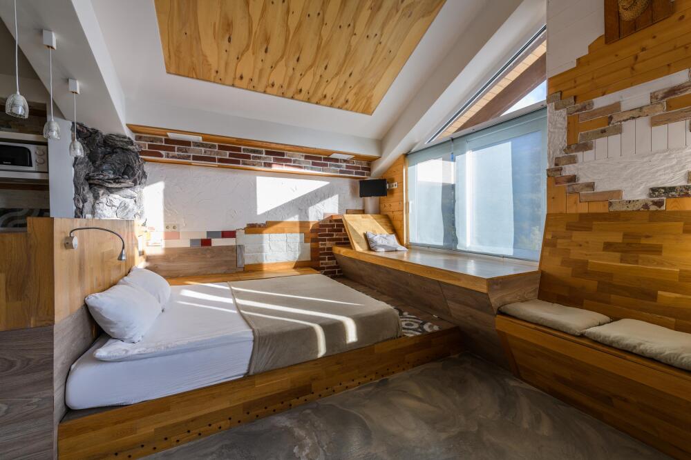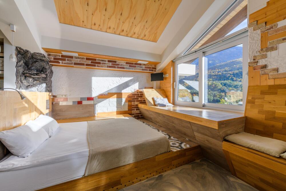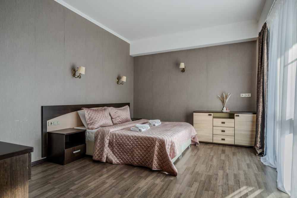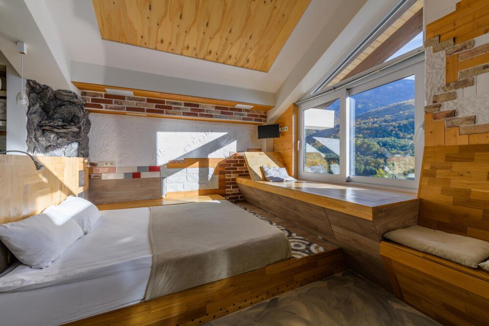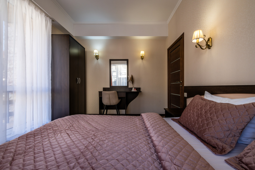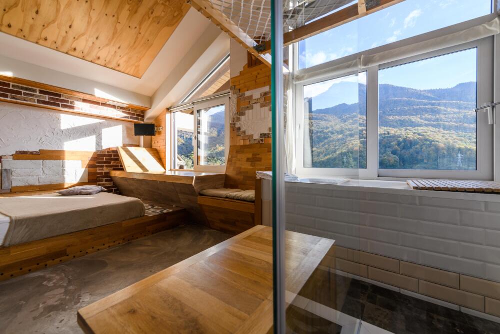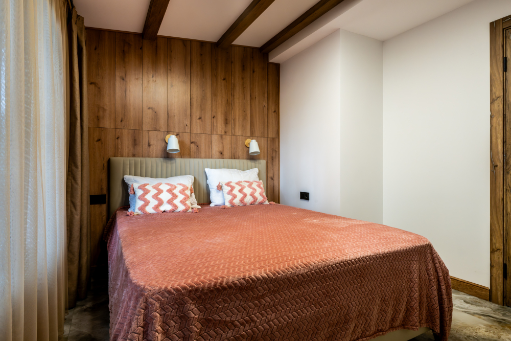 Забудьте об обычных номерах. «Оплот» – это уникальные дизайнерские апартаменты, где каждая деталь продумана до мелочей: от премиальных материалов до панорамных окон, открывающих захватывающие дух виды на величественные горы и волшебные закаты. Просыпайтесь прямо с кровати – и вашим первым утренним впечатлением станут заснеженные вершины или золото восхода! От 2 до 6 гостей найдут здесь свой идеальный уголок для комфорта.
