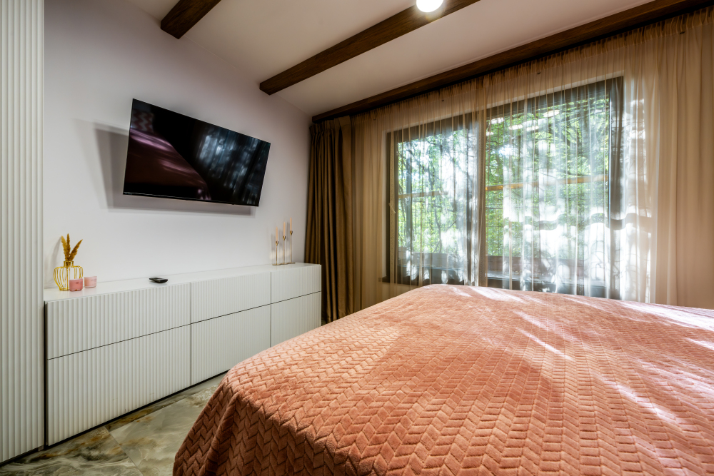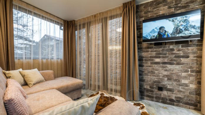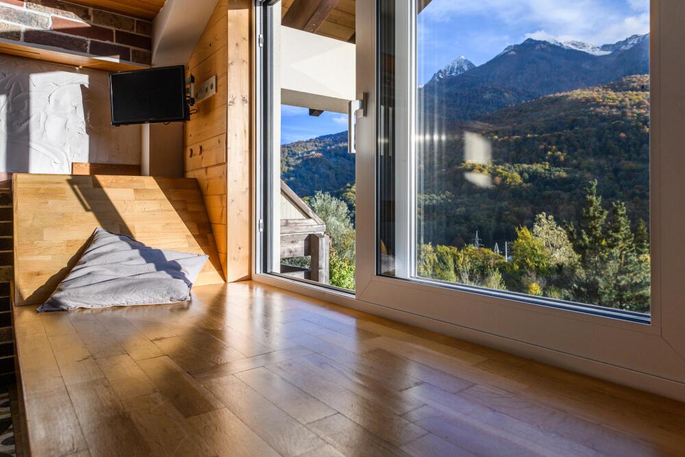 Раскладной диван + Smart TV → киновечера на фоне вершин