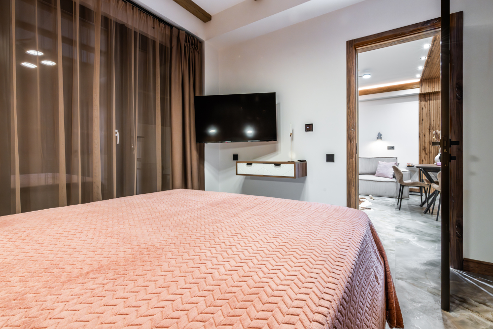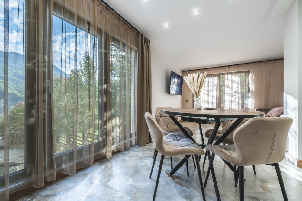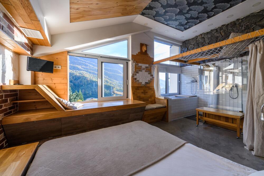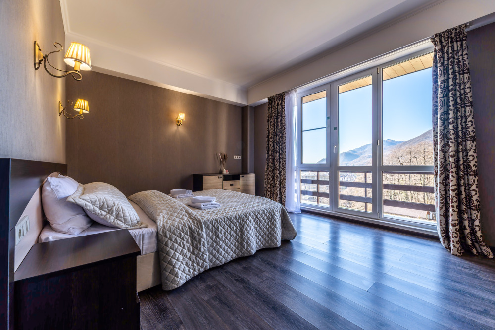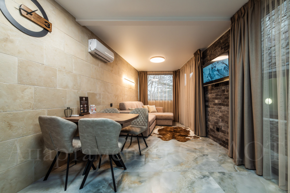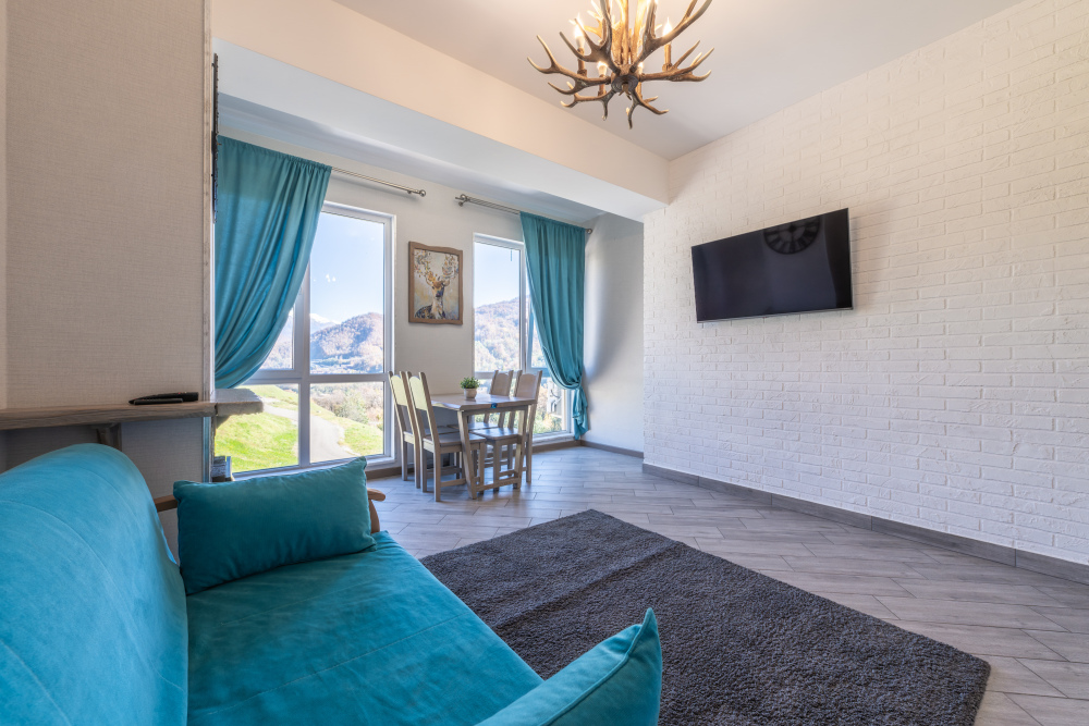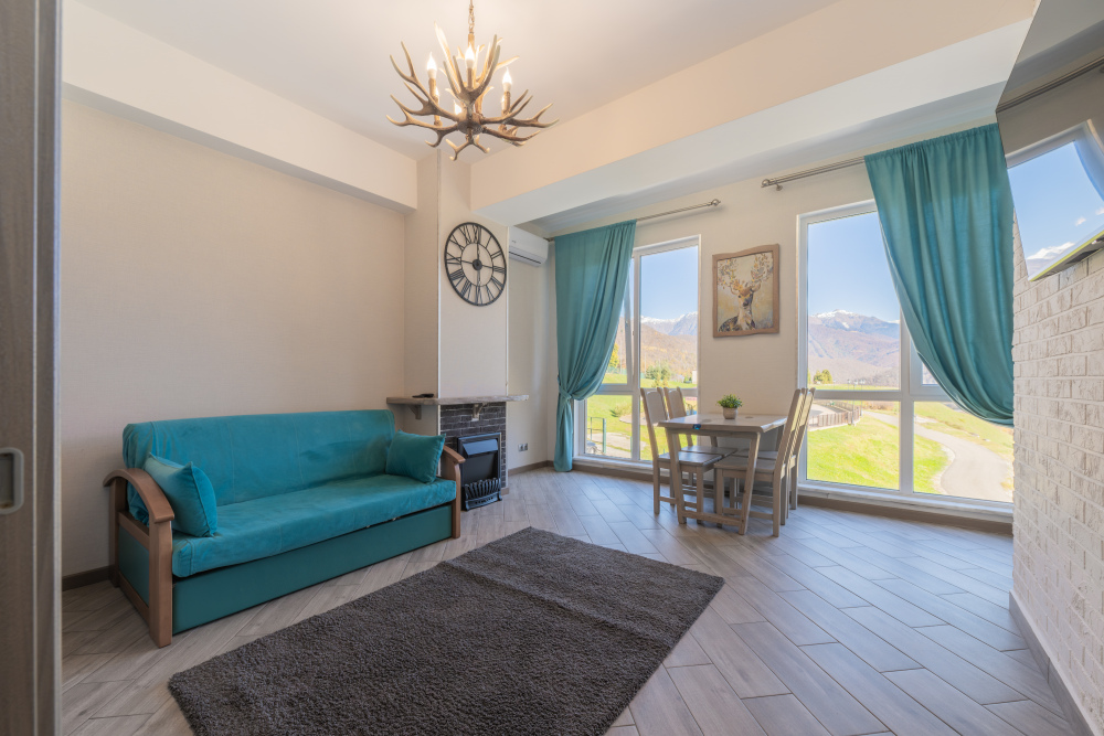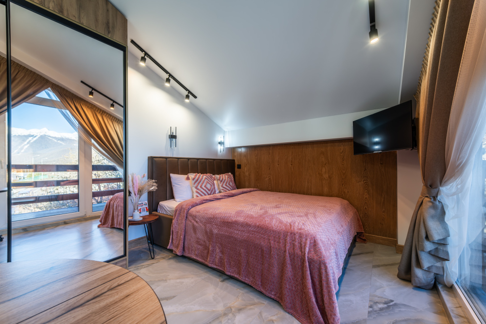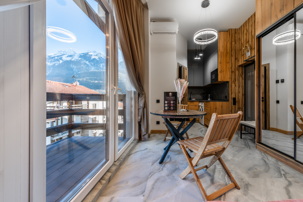 Уникальные дизайнерские апартаменты в сердце Красной Поляны. Просыпайтесь к величию гор. Отдыхайте в стиле.