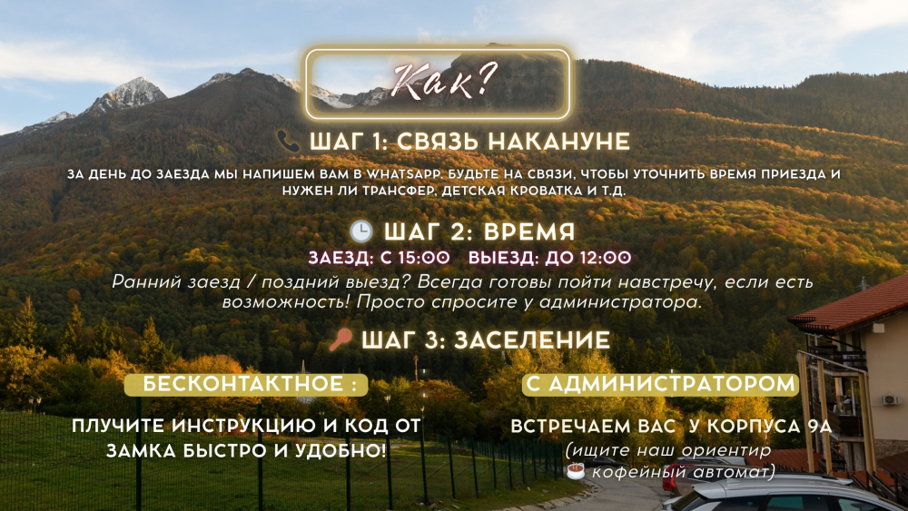 Бесконтактное заселение 24/7 или теплый прием по желанию.
