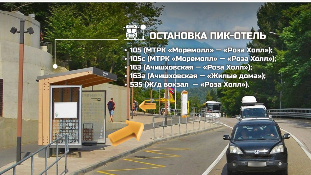 45 мин от аэропорта Сочи, 50 мин от вокзала Адлера.