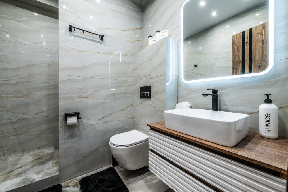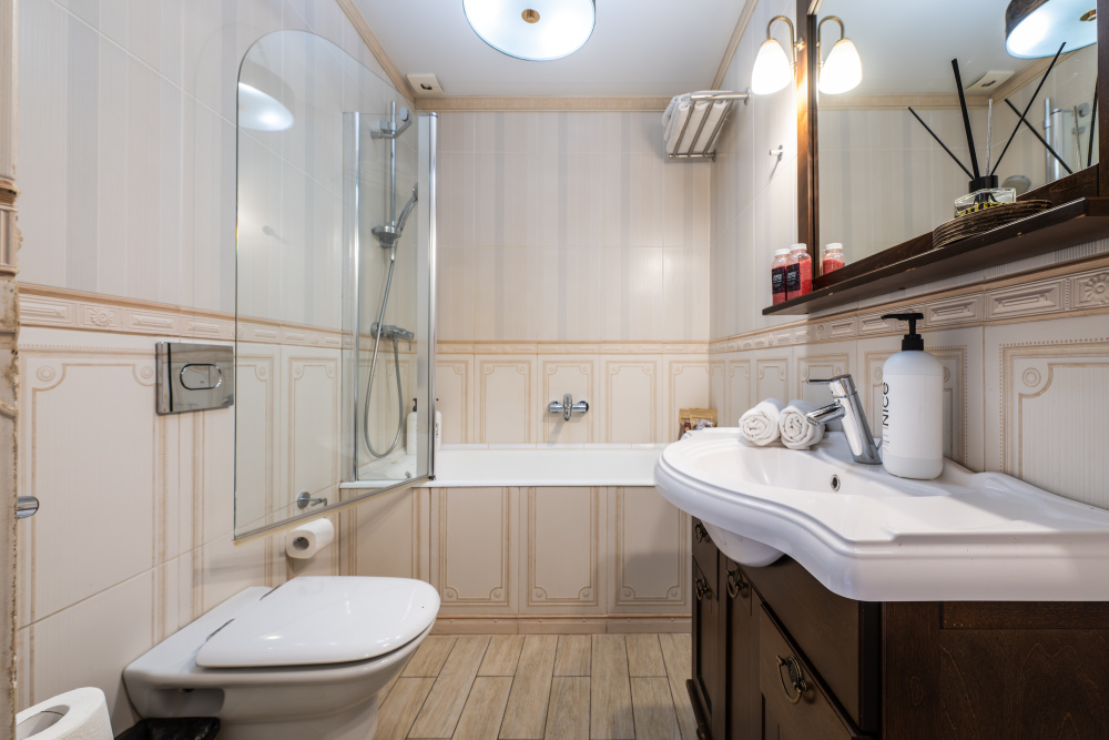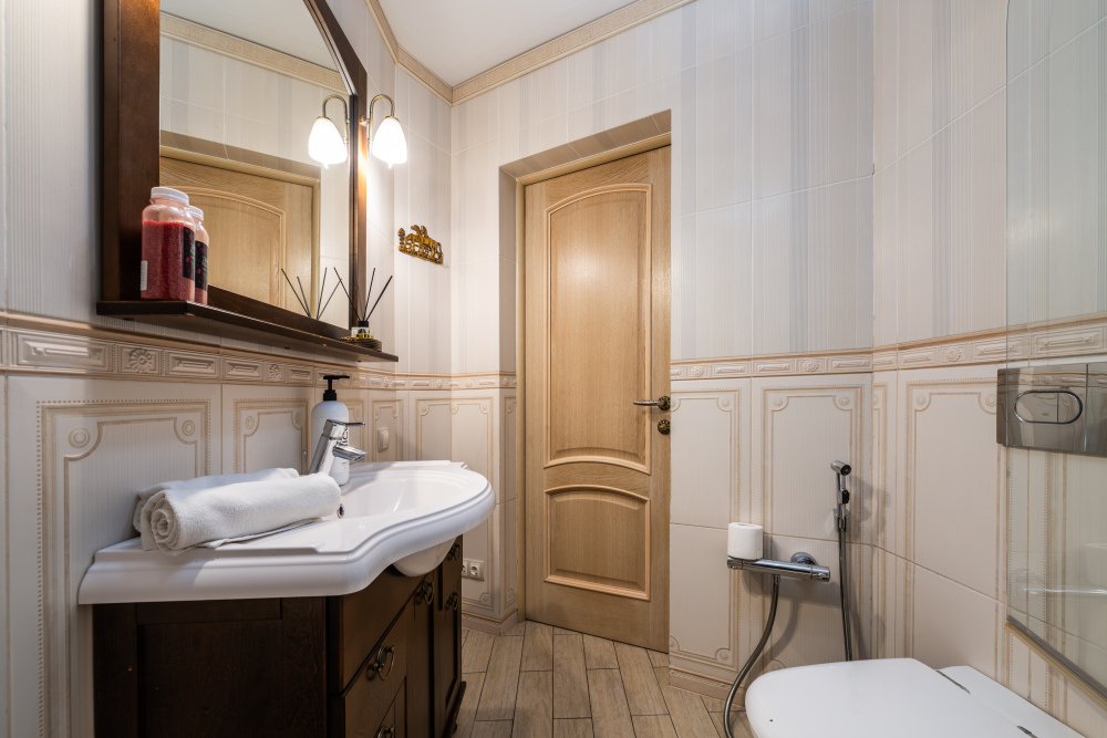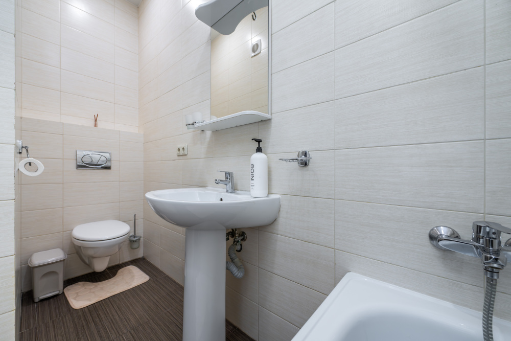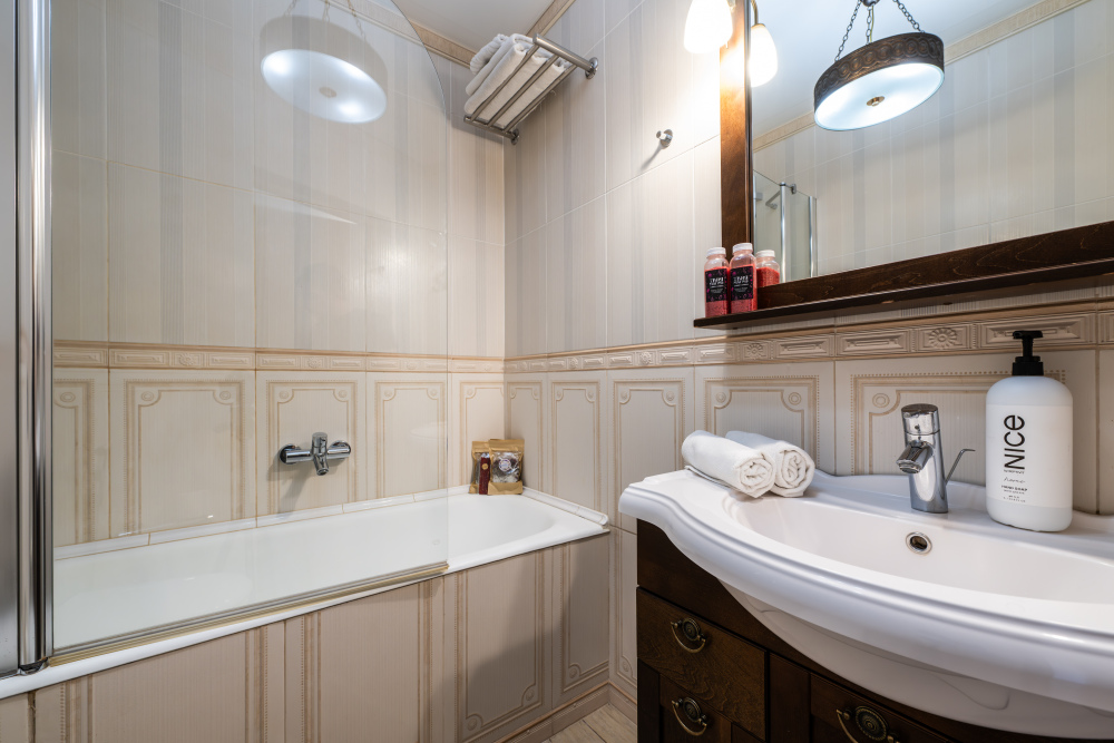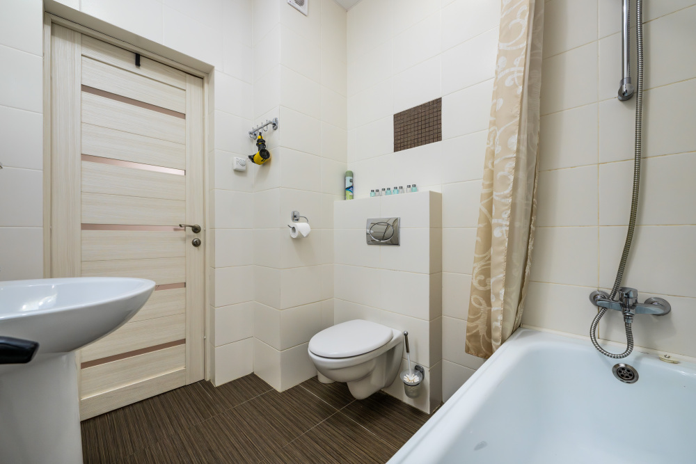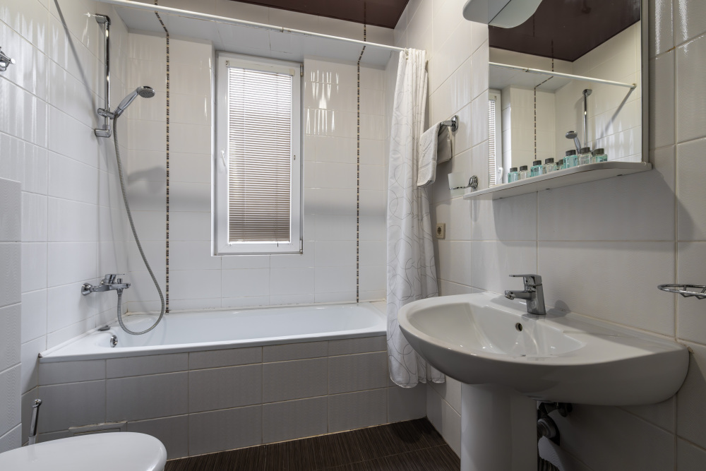 В собственной ванной комнате можно пользоваться феном, тапочками и бесплатными туалетно-косметическими принадлежностями.