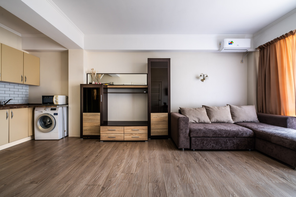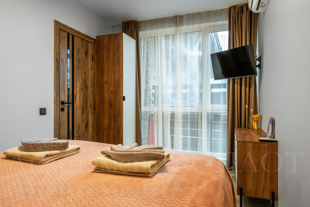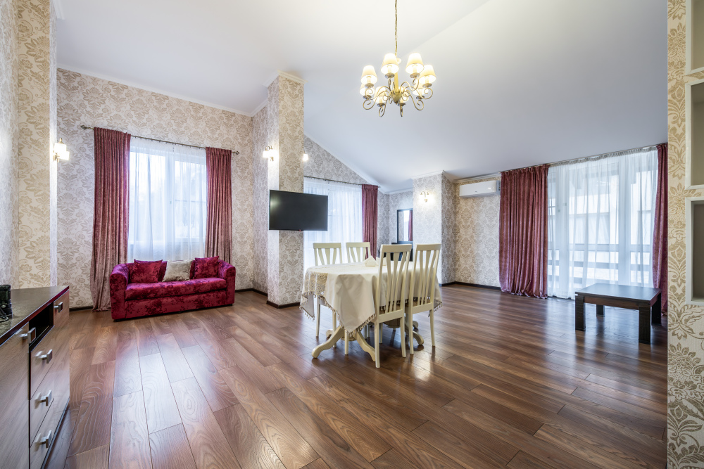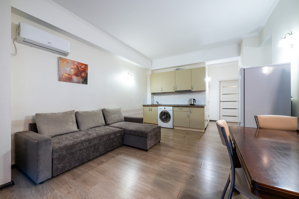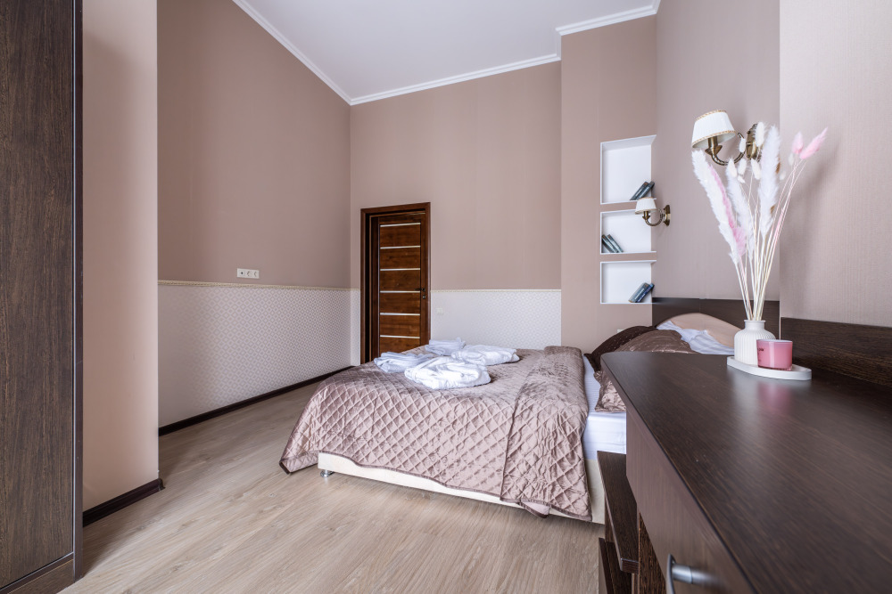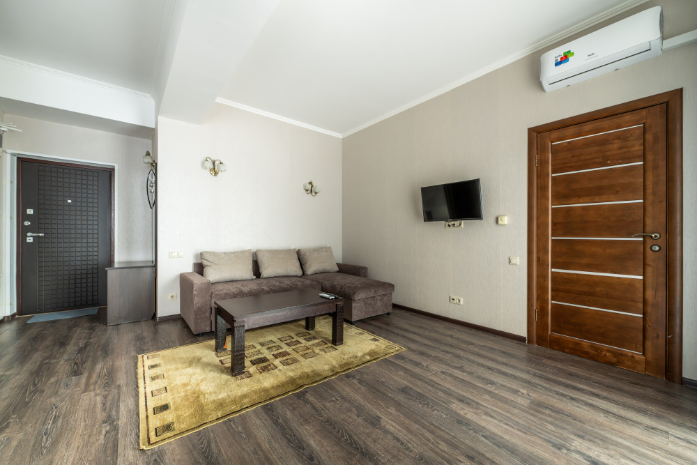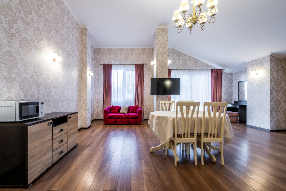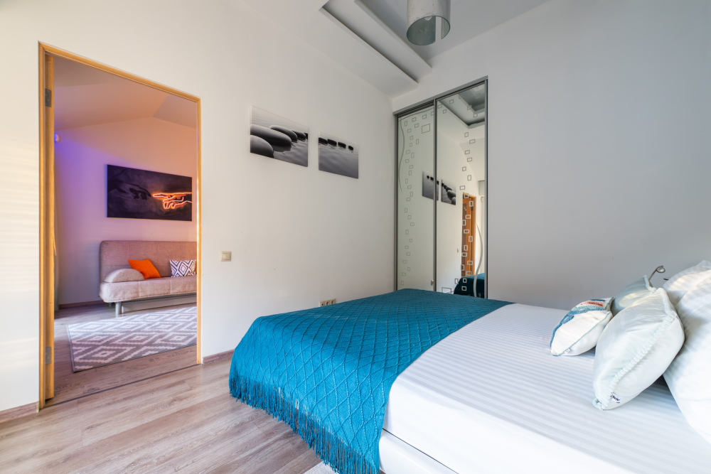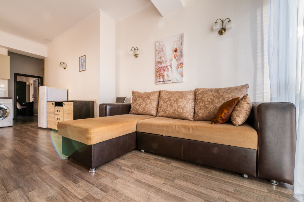 В Апартаментах, вы по-настоящему отдохнете в приятной домашней обстановке. Отдельная спальня и просторная гостиная самая удобная планировка для комфортного отдыха. Имеется 4 спальных места - 2 в спальне и 2 на раскладывающемся диване. Отдельно стоит отметить наличие кухни с необходимым инвентарем и оборудованием для приготовления блюд, что тоже очень удобно. Санузел с душем и стиральной машинкой.