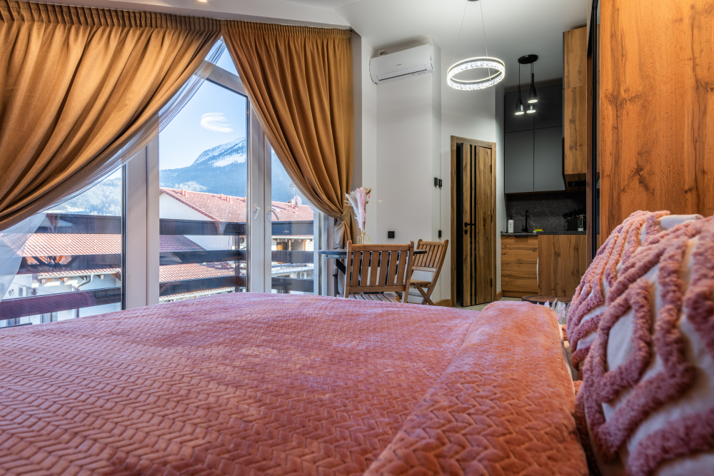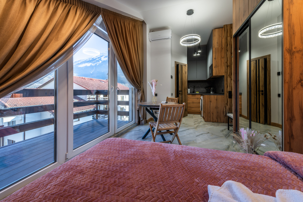 В Студиях Вы сможете прекрасно отдохнуть, насладиться обилием света, свежего воздуха, и полюбоваться горным пейзажем.