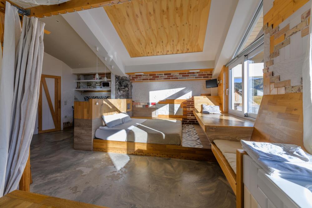 -отличает уютная атмосфера горного шале. Площадью 19м2 c одной большой кроватью. Студии оснащены классической ванной или душем.