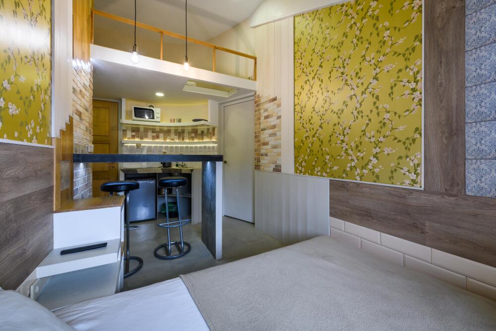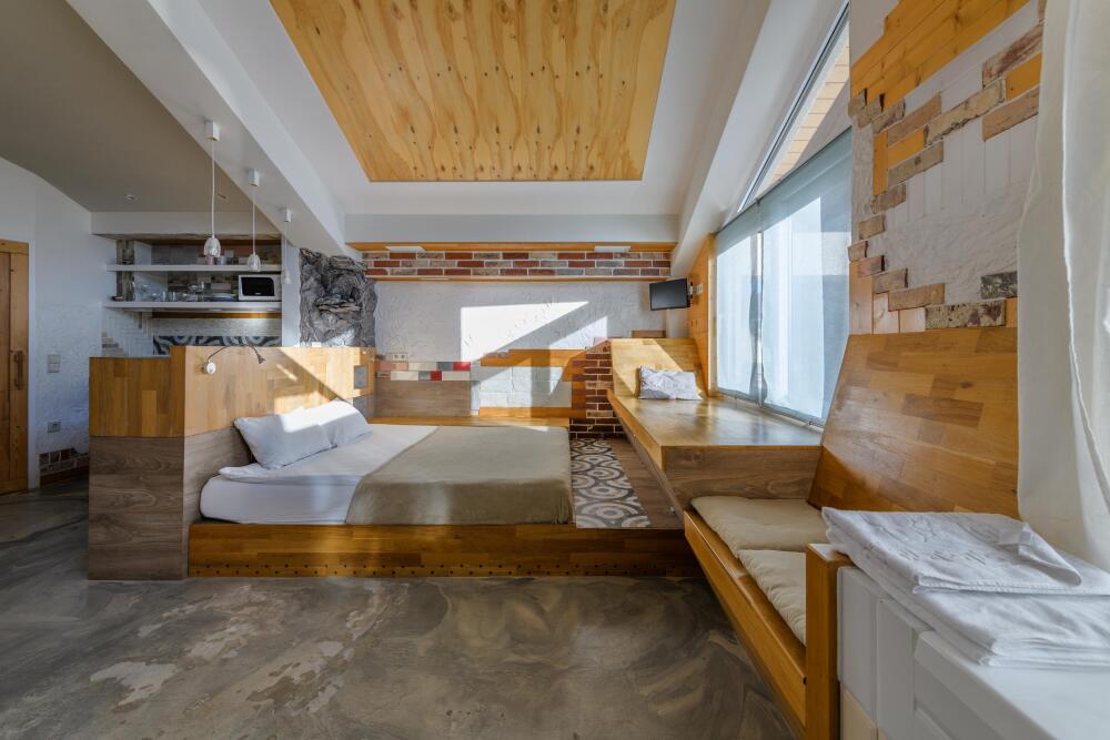 В этом уютном Делюксе площадью 35 кв. м. есть выделенная зона спальни, гостиная с кухонной зоной, ванная комната с душем и собственная терраса.