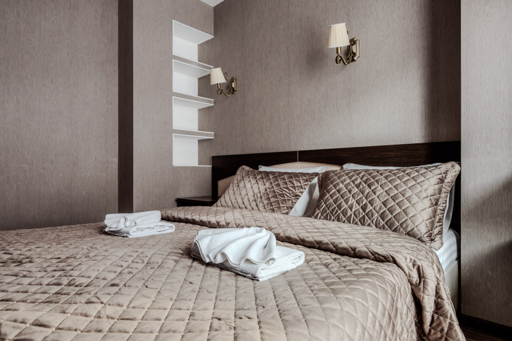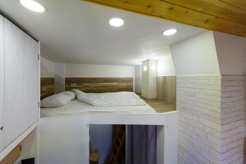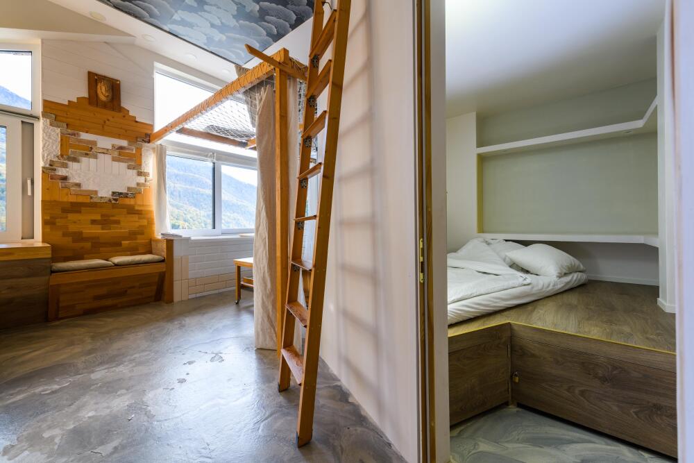 • Двуспальная кровать + односпальное место на втором уровне («как в детстве»)
