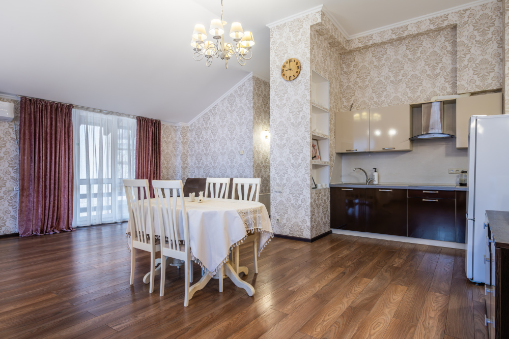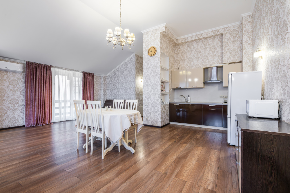 Оснащенные всей нужной мебелью и техникой: полноценная кухня с плитой и посудомоечной машиной, холодильник.