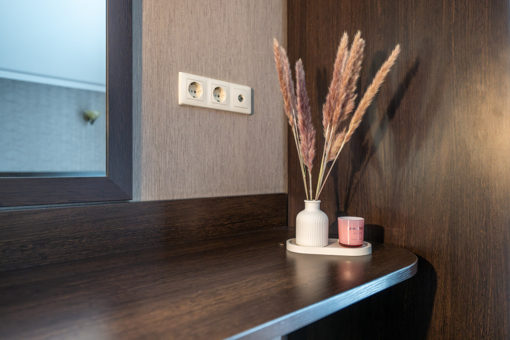 Роскошь чистоты: Качественные средства гигиены, пушистые банные халаты, тапочки и полотенца создают ощущение дома премиум-класса.