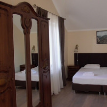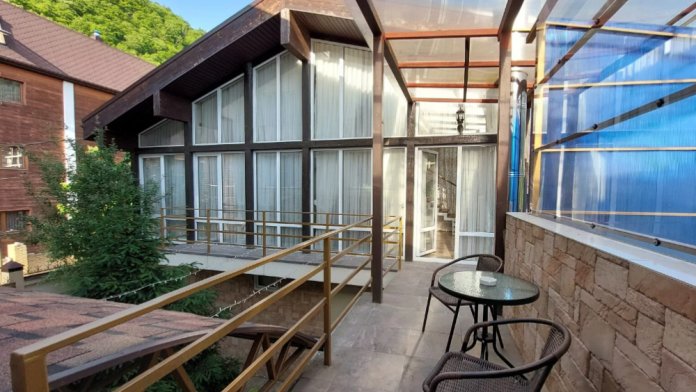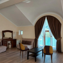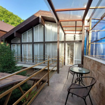 На первом этаже находится кухня-столовая со всем необходимым оборудованием и посудой, сахар, чай. Во внутреннем дворике мангал и столики на которых можно посидеть во дворе, украшенном экзотическими цветами. Оборудовано сушильное помещение для лыжного оборудования. На всей территории бесплатный WI-FI. Дополнительно предлагаем разнообразные экскурсии. Осуществляем трансфер. При заселении комплимент от отеля.